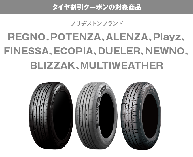 - BSブランドのタイヤ4本購入時、店頭表示価格(税込)より割引いたします。