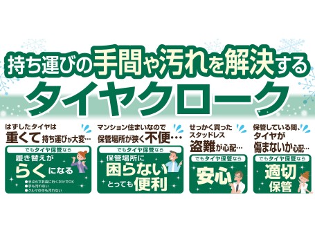 タイヤのコンディションチェックって、意外に忘れがち。ならばそんなタイヤの点検は、当店におまかせください。当店ではクルマの安全走行に欠かせないタイヤのチェックを「タイヤセーフティー点検」として、空気圧、偏摩耗、外傷、残溝の4項目にわたり無料で実施しています。ここではその点検内容をご紹介しましょう。