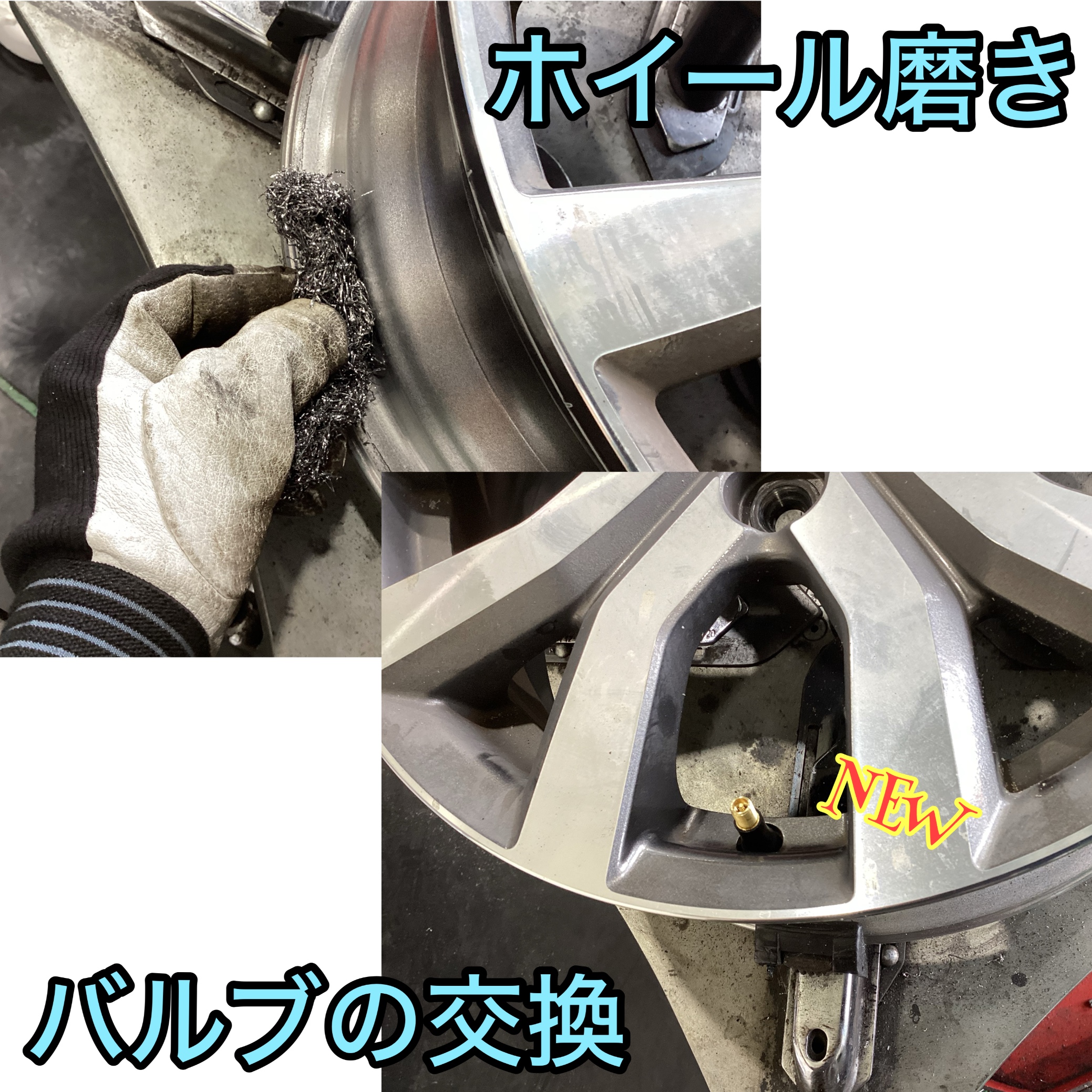 タイヤを剥がしたら、ホイールを磨いてバルブを交換します!