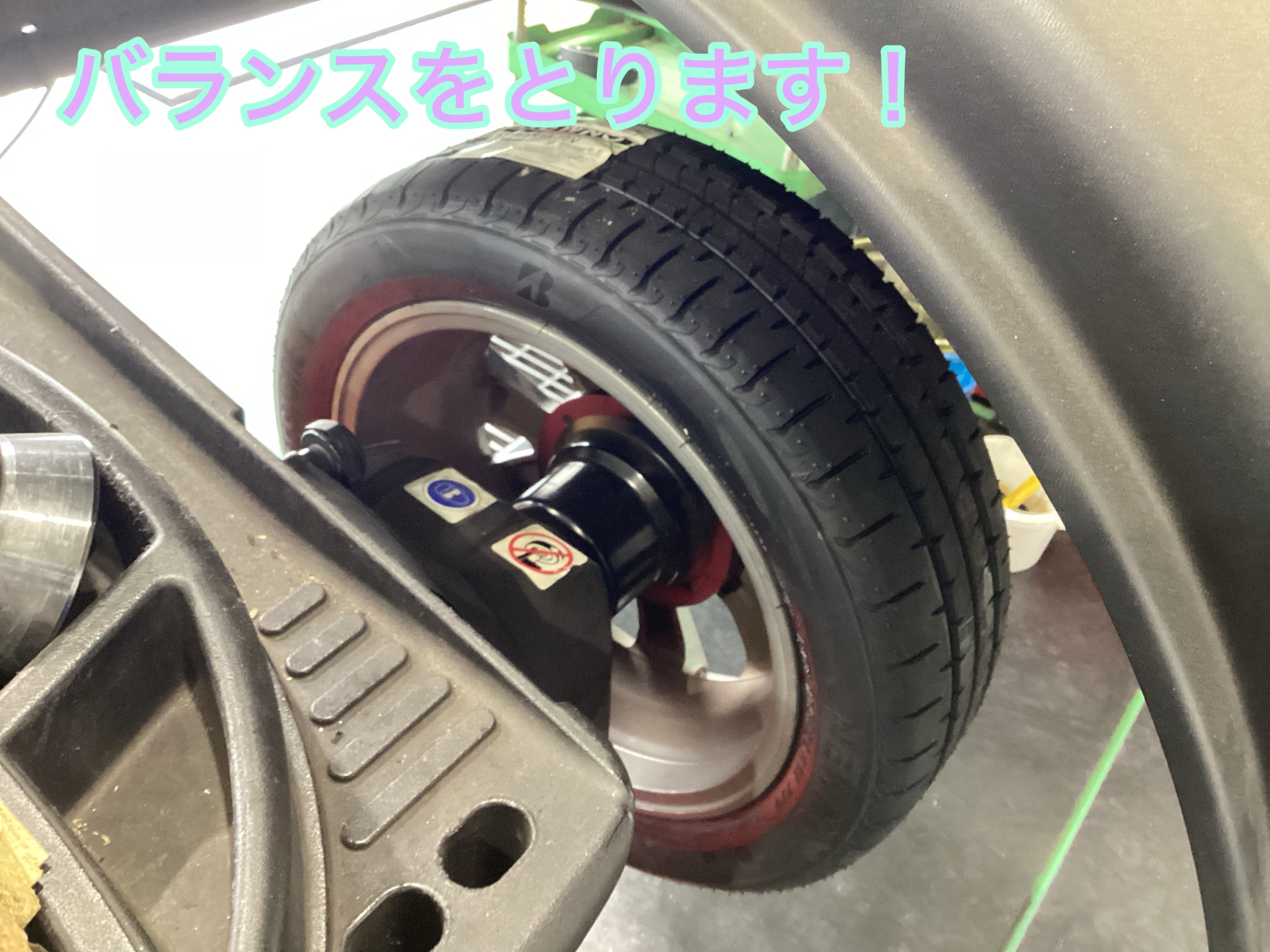 バランスを取ることができたらタイヤを車に取り付けていきます!