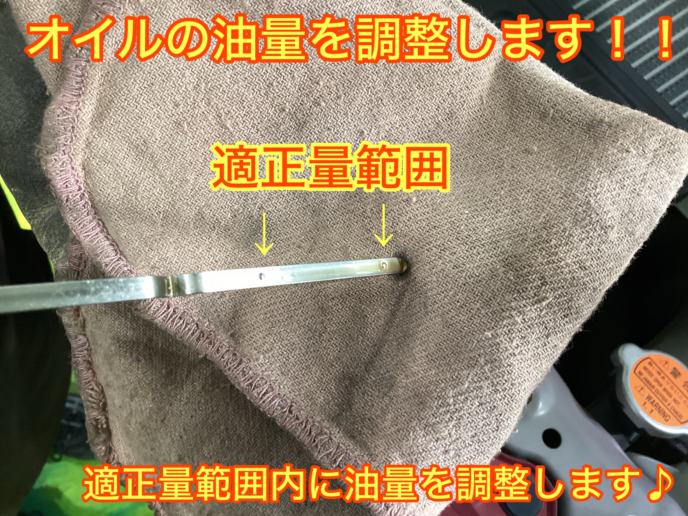 新しいオイルをある程度適正量入れ、エンジンを回して止めて少し置いてから