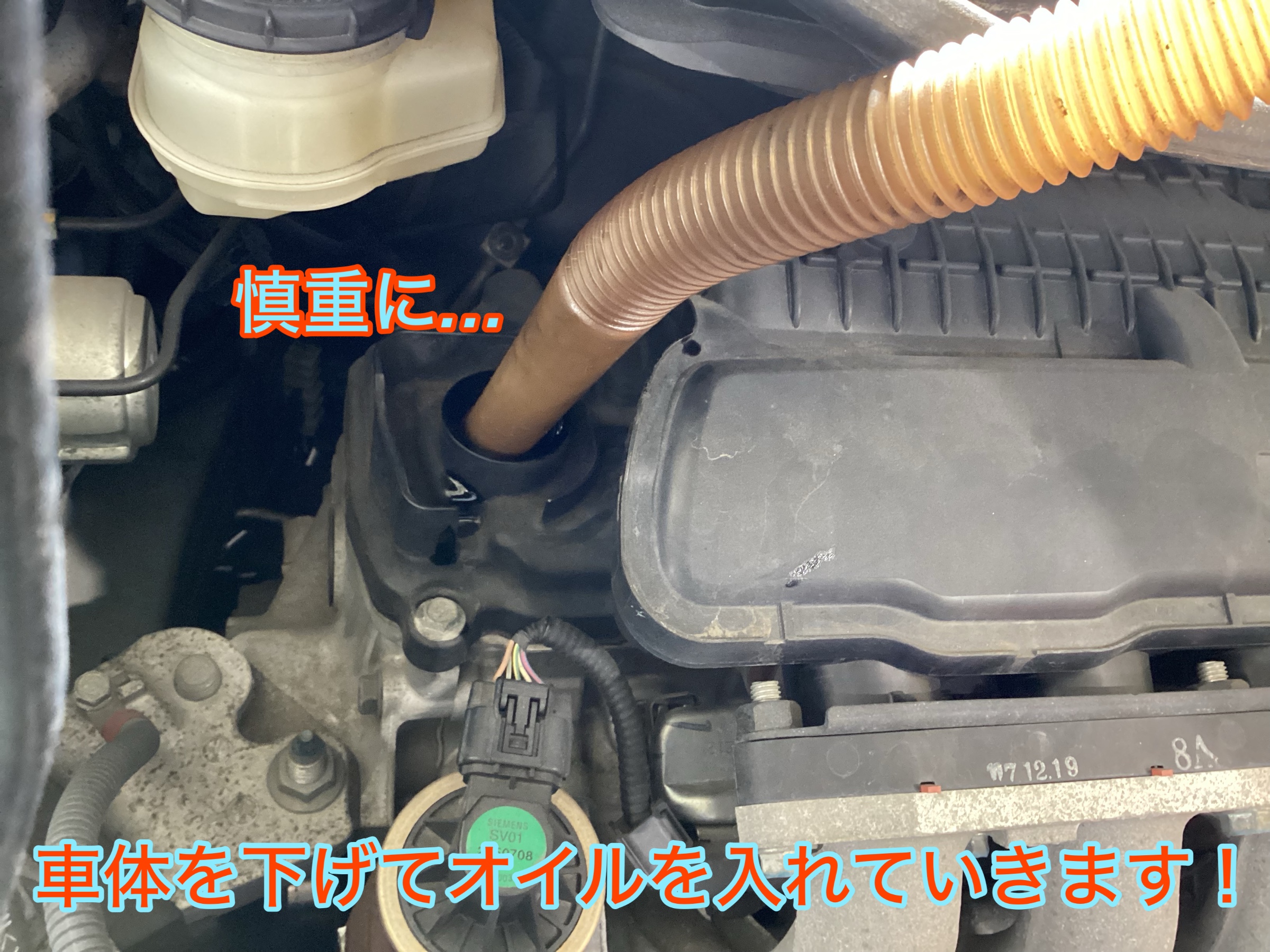 ある程度油量を入れたらエンジンをかけて再度リフトアップし、
