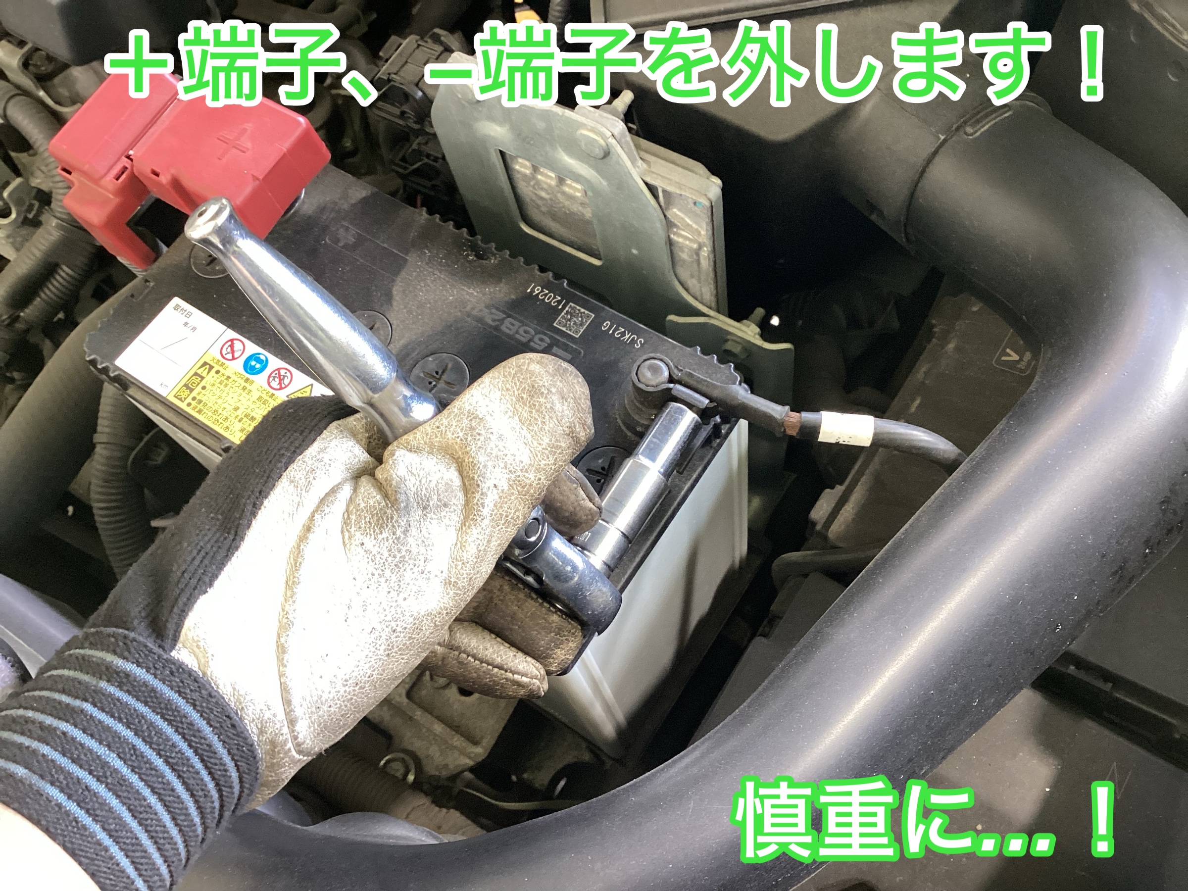 端子を外したら、端子が周りの鉄製部品に当たらないよう気をつけながら