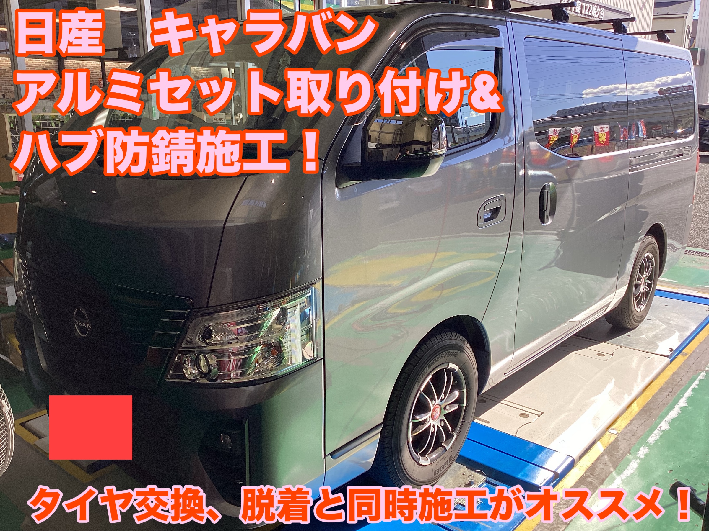 日産 キャラバン アルミセット取り付け&ハブ防錆施工!