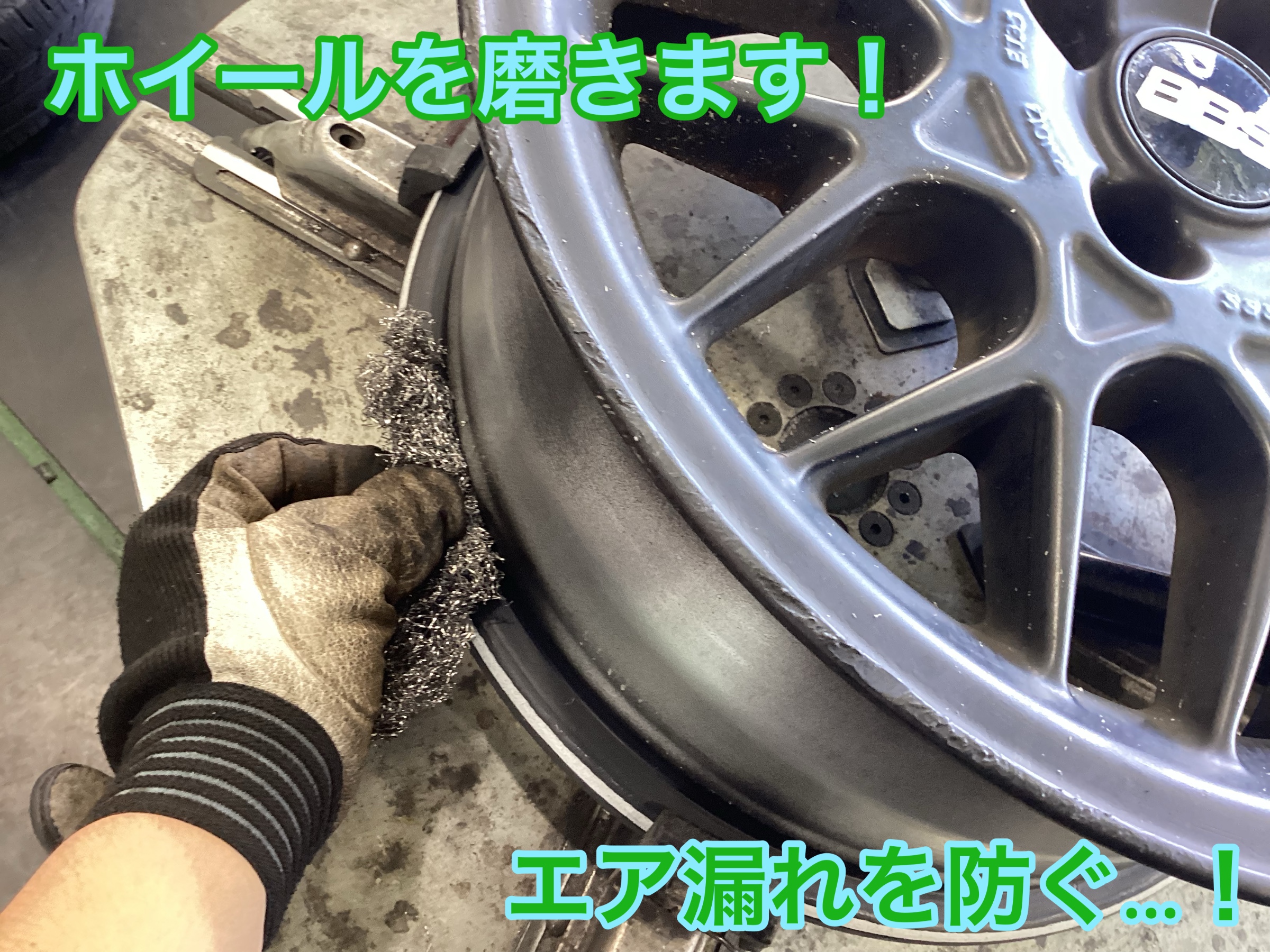 タイヤとホイールが密着するところに汚れがあるとエア漏れを起こしてしまう可能性があるので