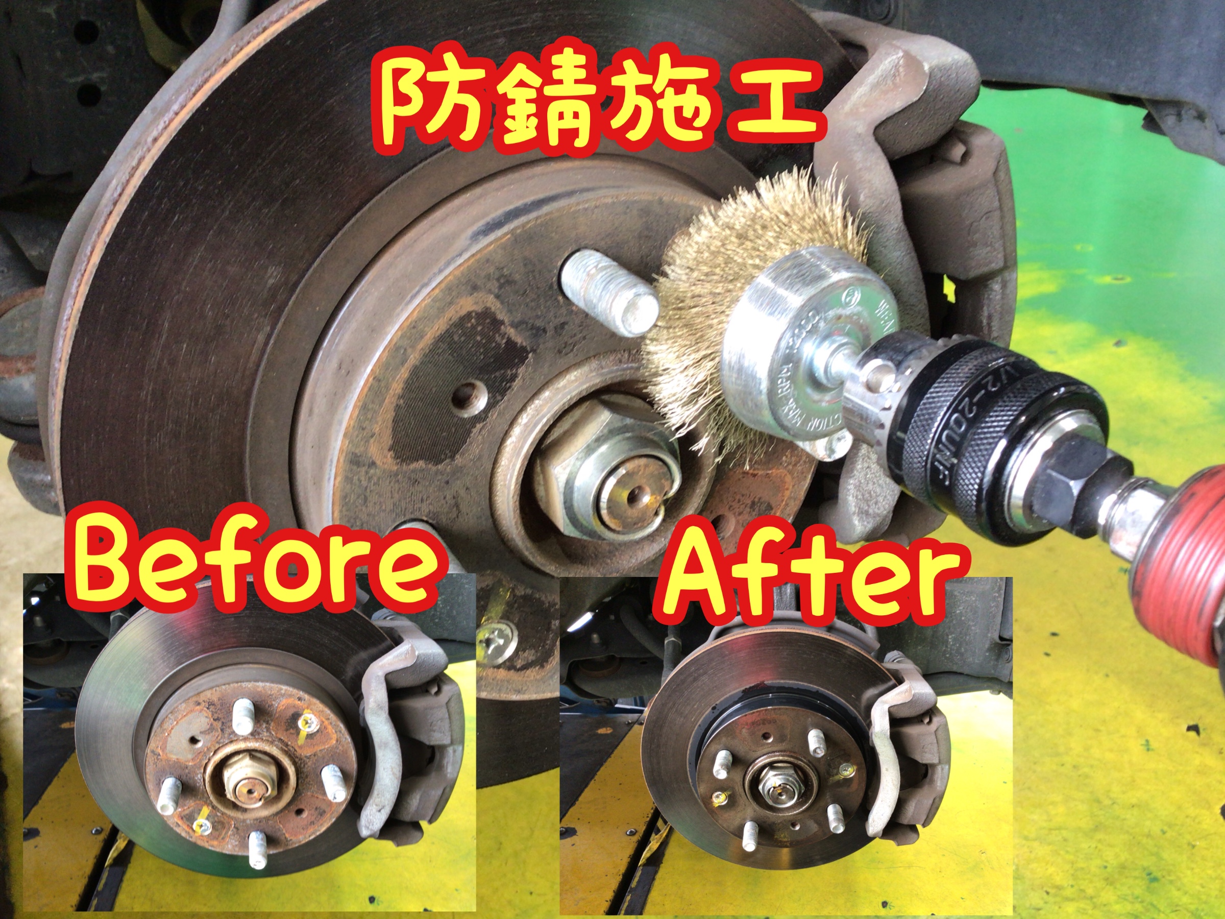 ↓↓↓タイヤ・ホイールを取り付ける前に、取り付け部(ハブ)の錆が気になったので同時に作業させて頂きました。