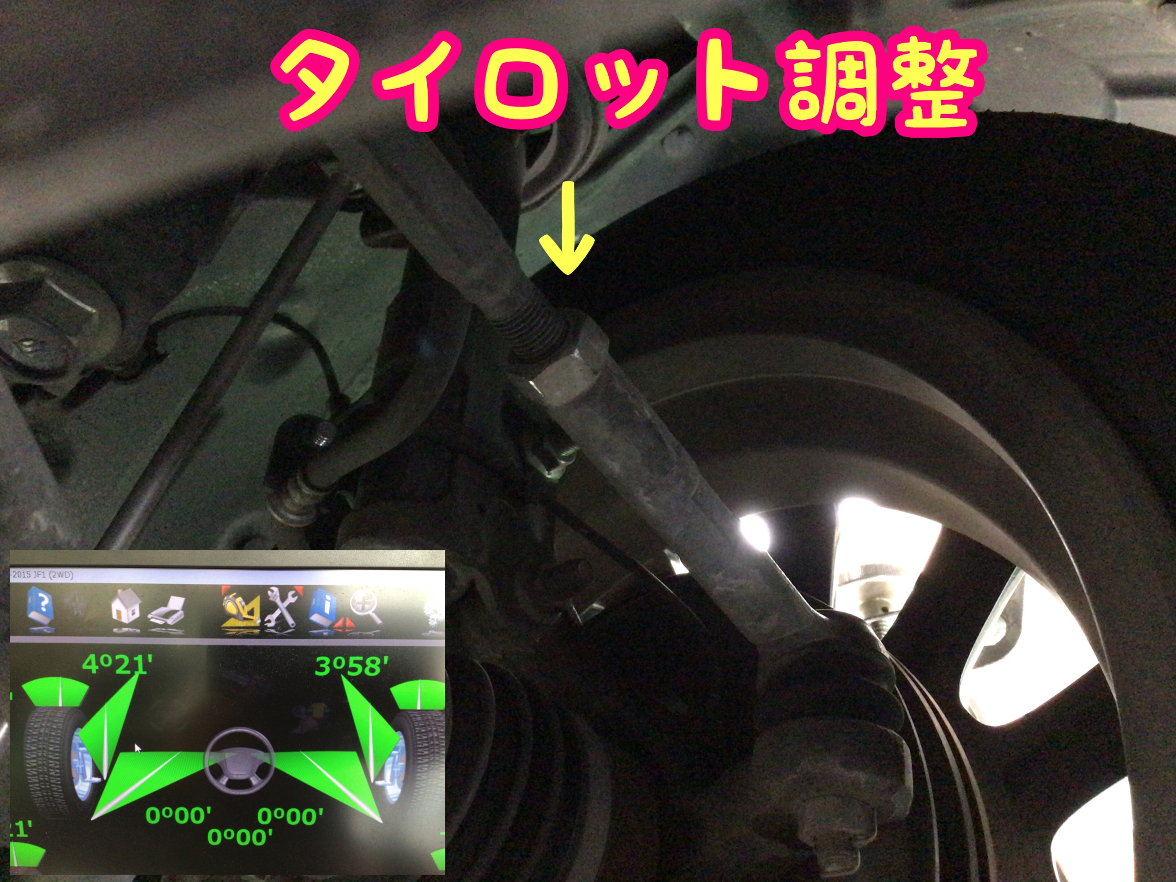 ↑↑↑ホンダ N-BOXの場合はフロントの調整のみ!調整前の写真撮り忘れましたが、使用状況に応じた