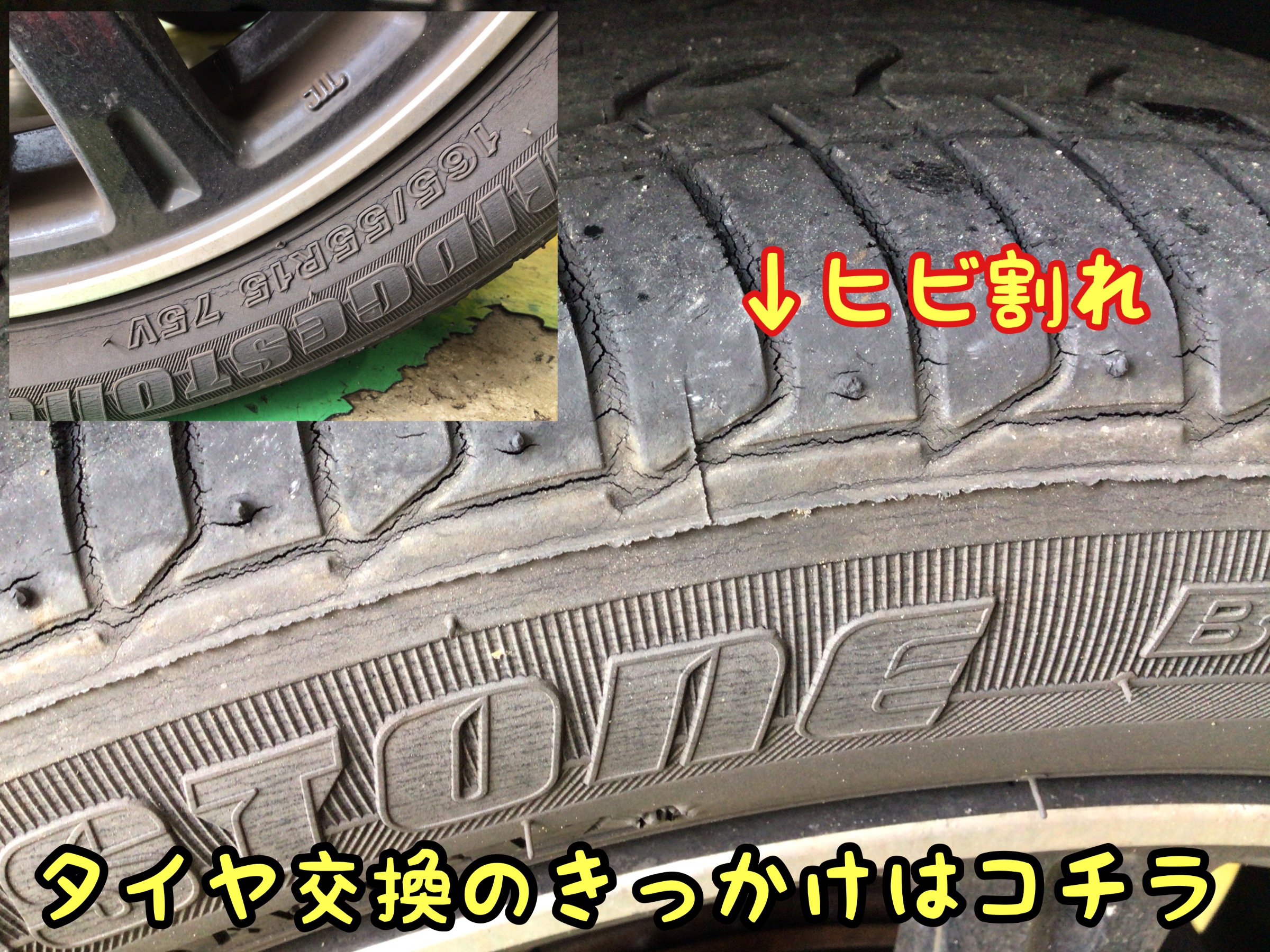 ↓↓↓タイヤの状態の確認でご来店でしたが、点検させて頂くと「ヒビ割れが・・・」(+_+)