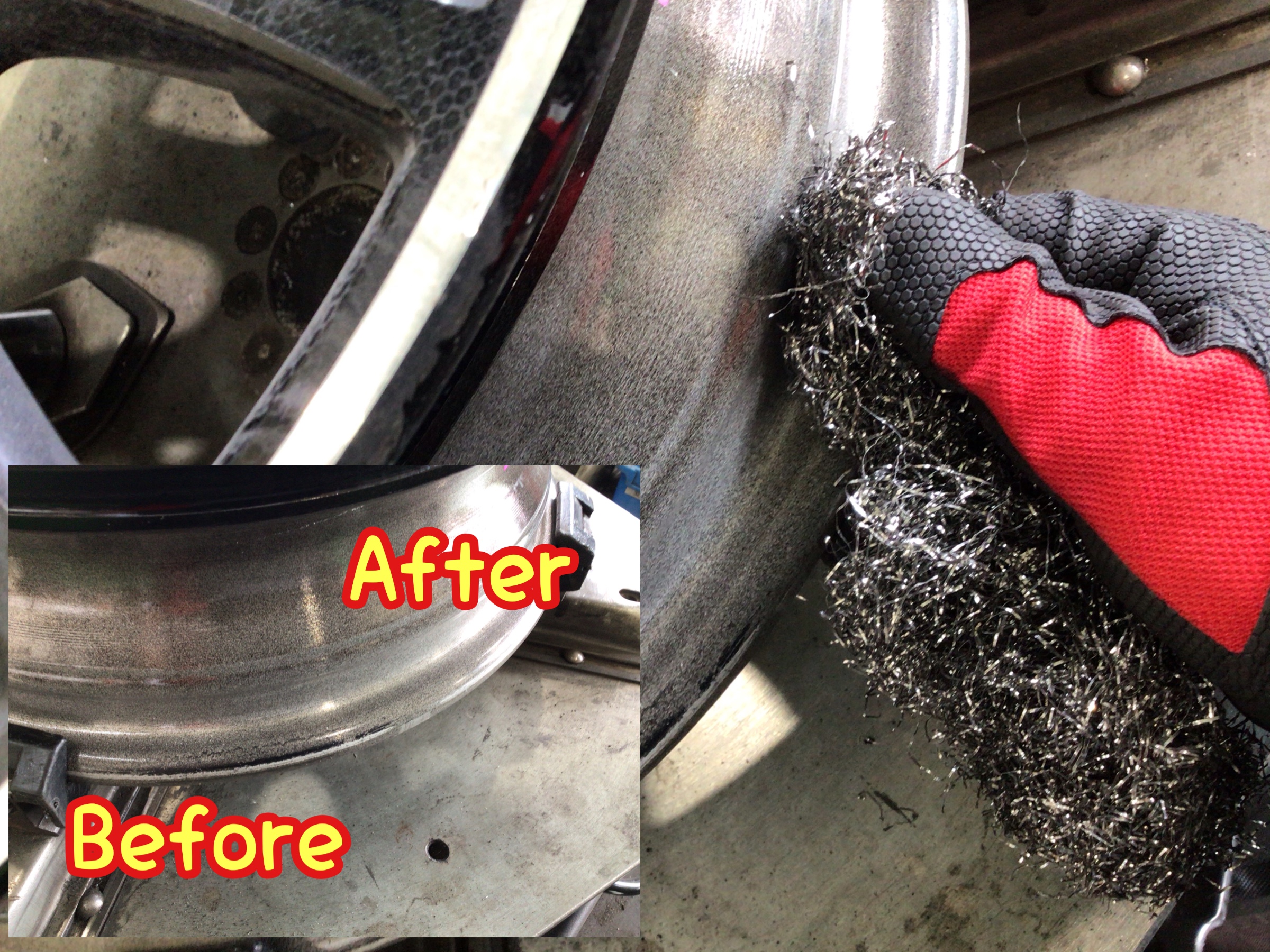 古いタイヤを剥がしたらホイールリム部の清掃♪