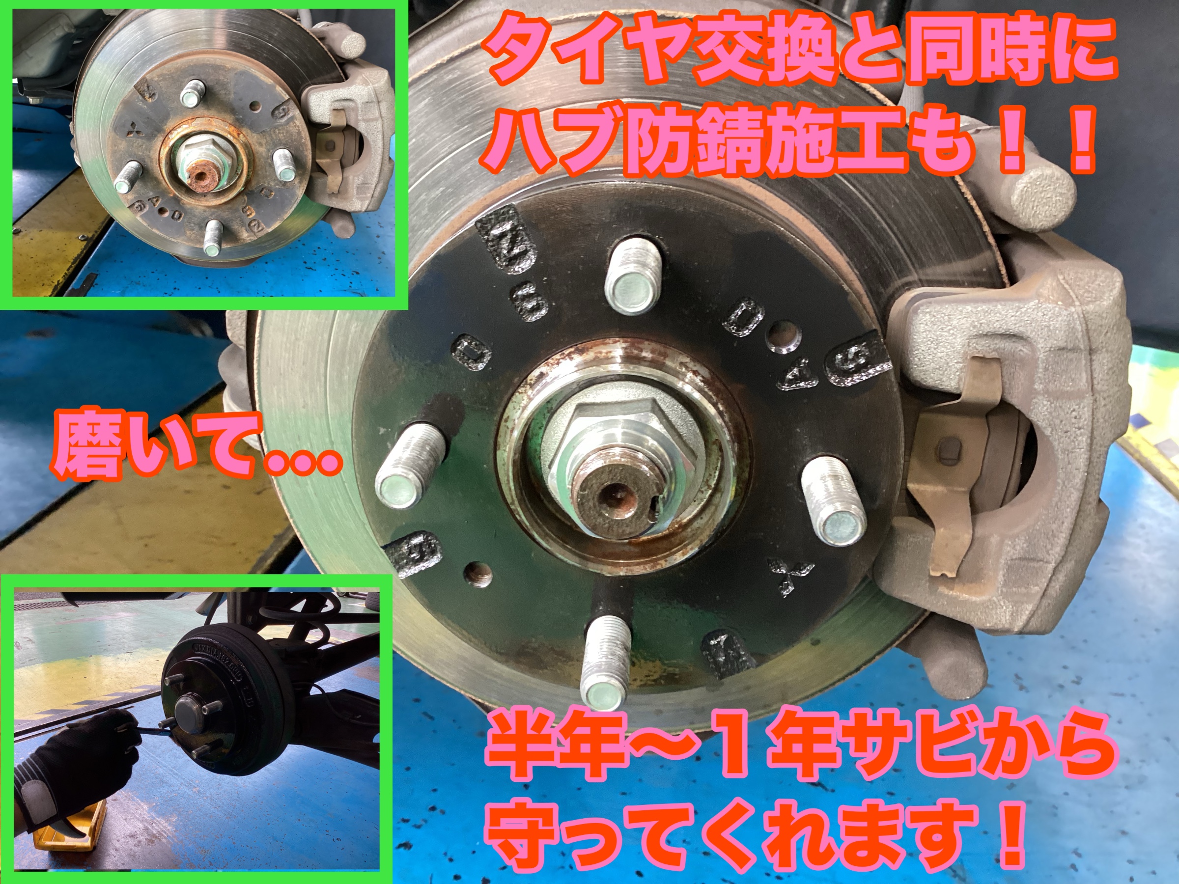 今回はタイヤ交換と同時にハブの防錆施工もご一緒に施工させて頂きました!