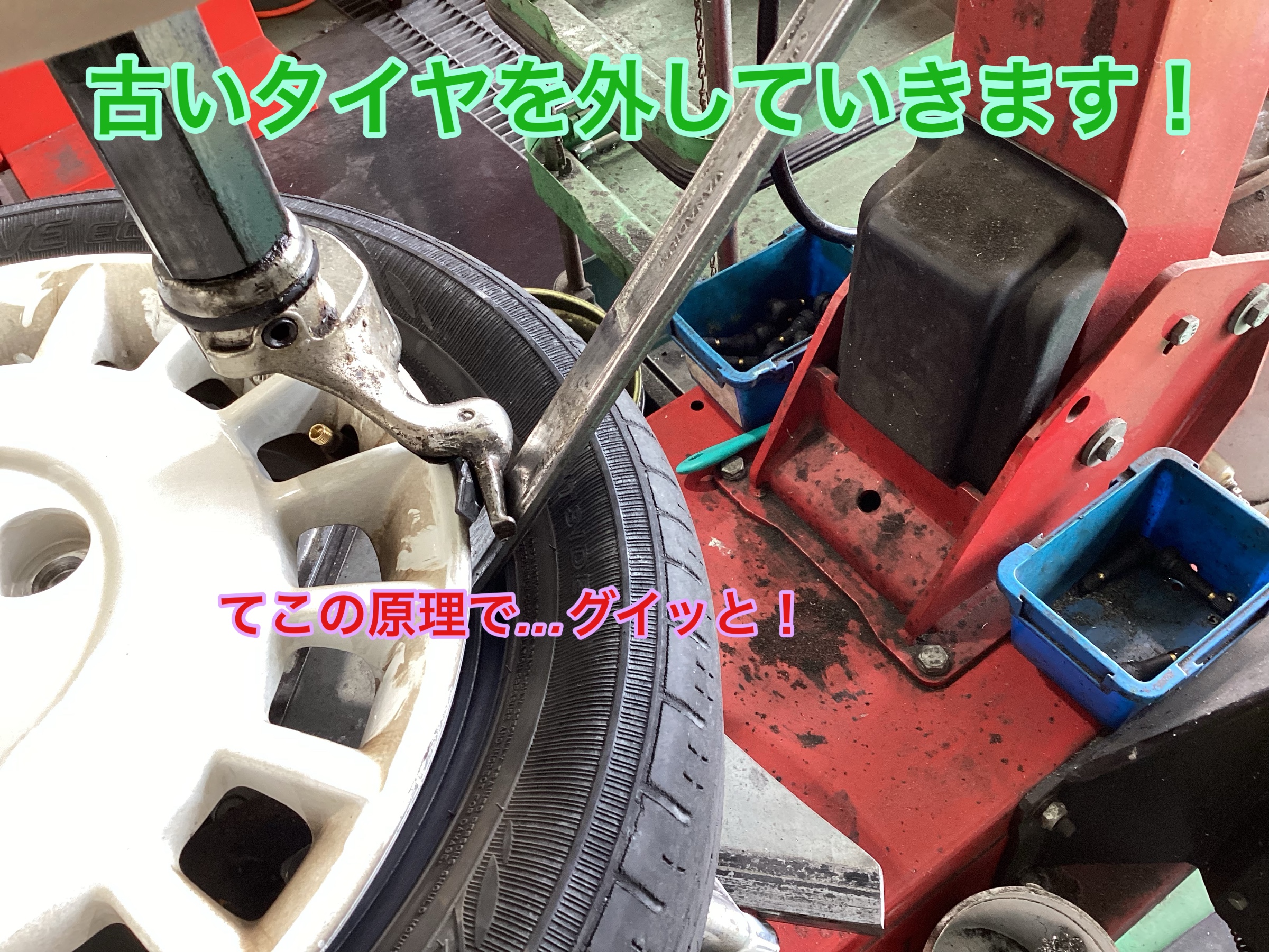 まずはタイヤを機械にセットし、古いタイヤを外していきます!