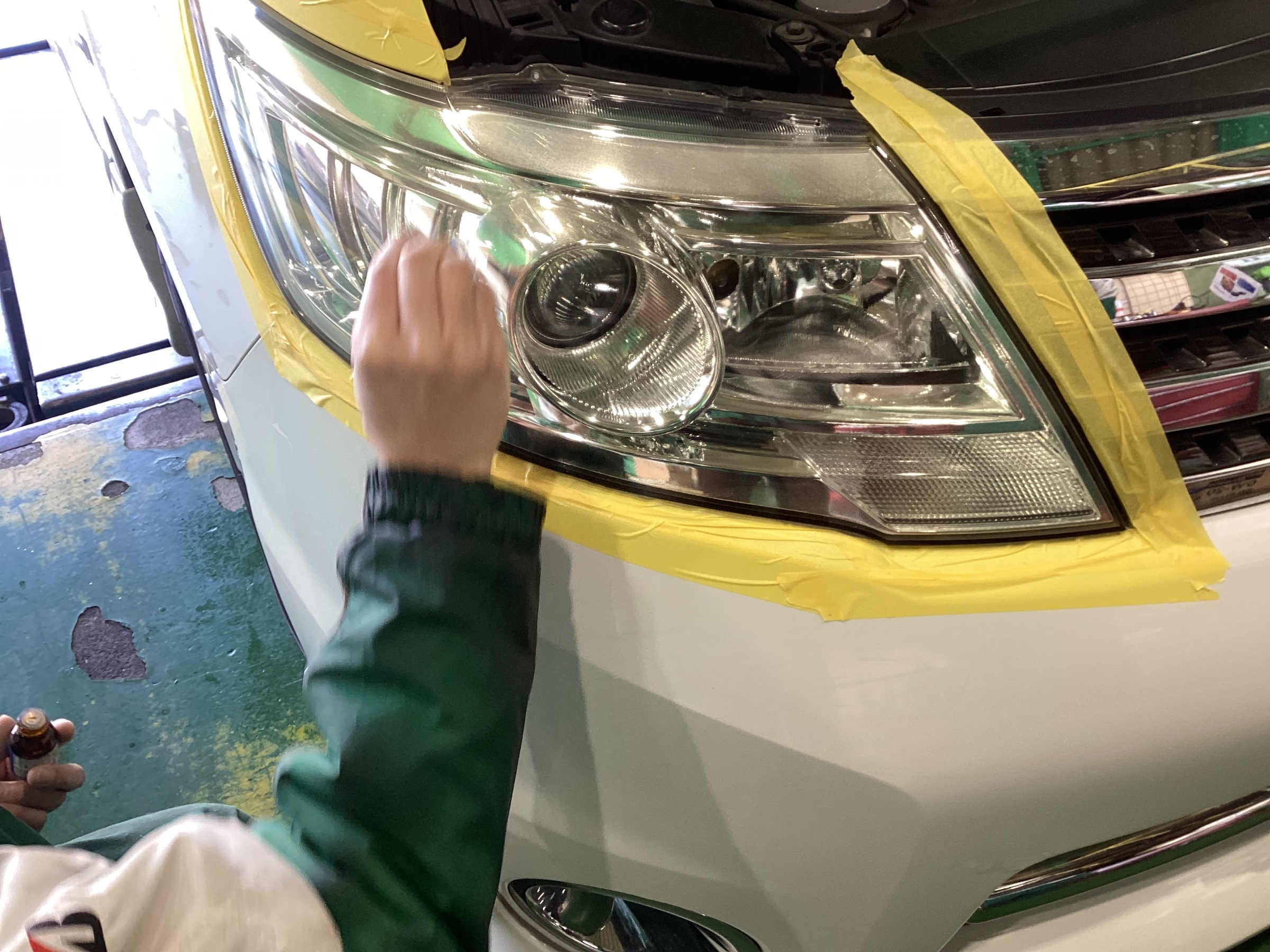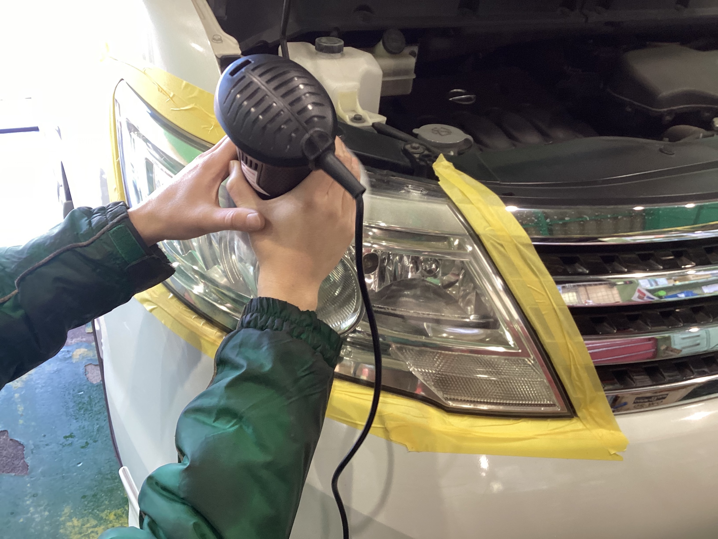ヘッドライトの周辺をマスキングテープで養生してから作業をしていきます(^^♪