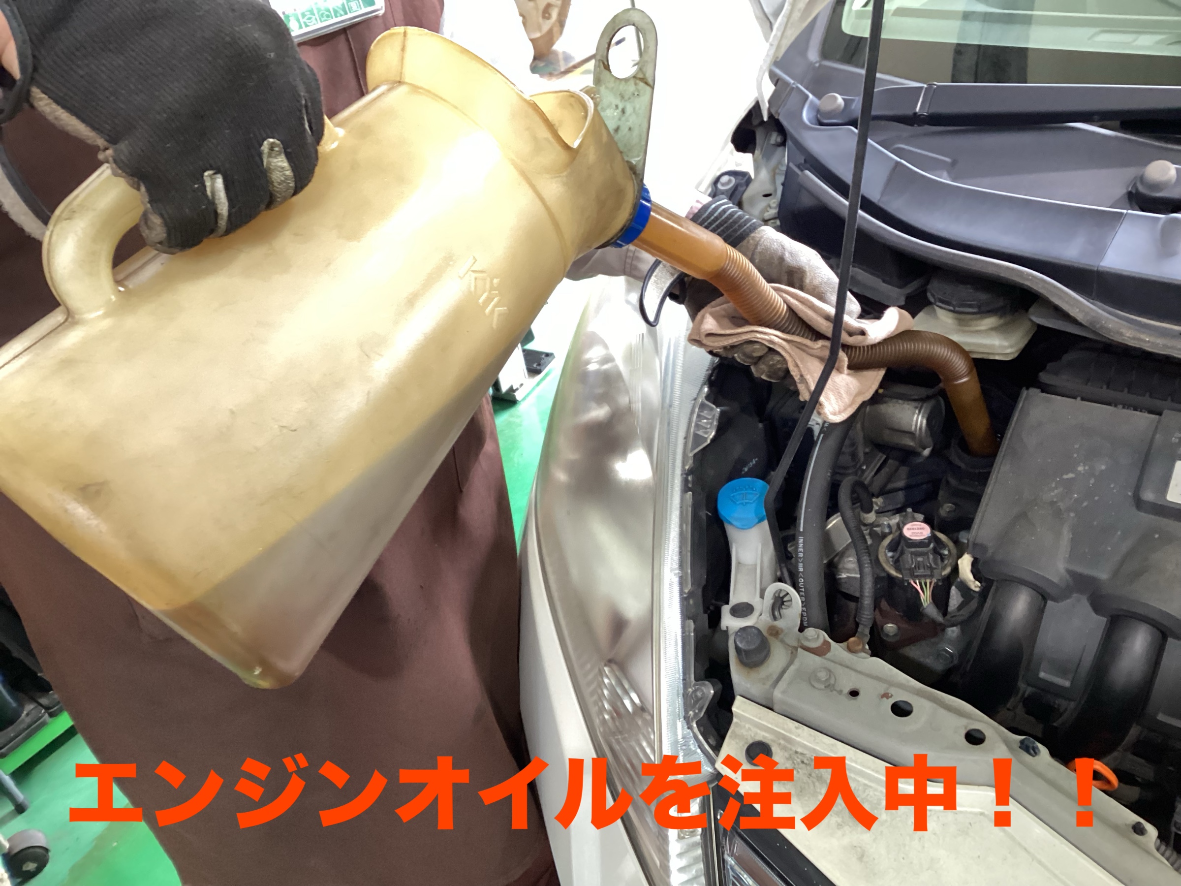 エンジンオイルが抜ききったらエンジンオイルを規定量入れていきます。