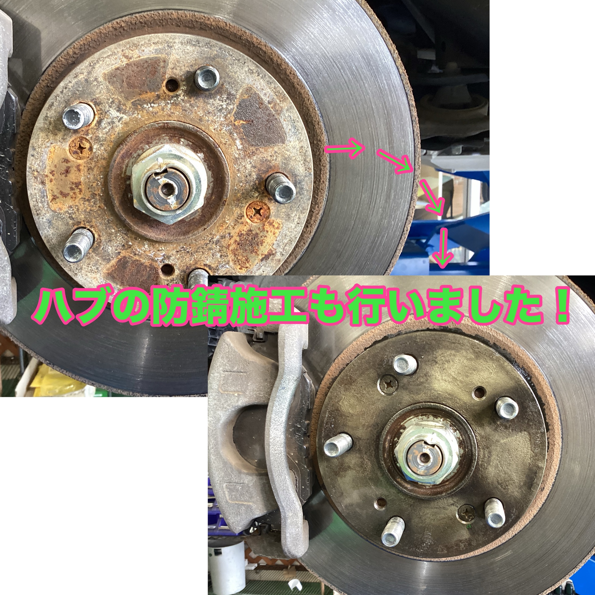 今回はハブの防錆施工もご一緒に施工致しましたので、