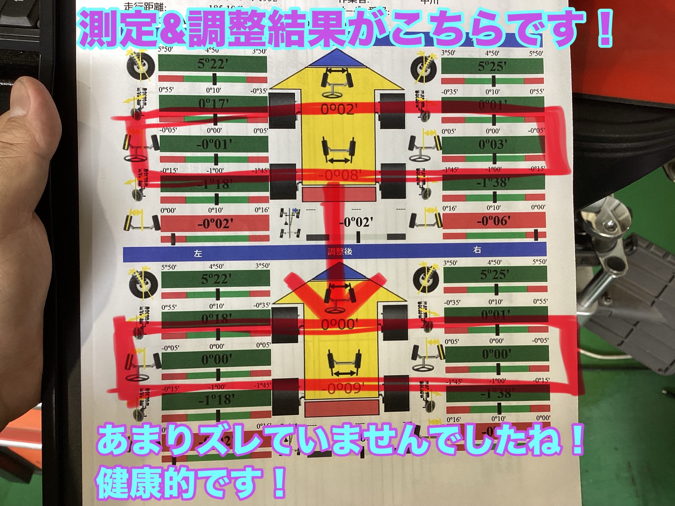 それでもしっかり基準値に調整し直して、作業は完了です!