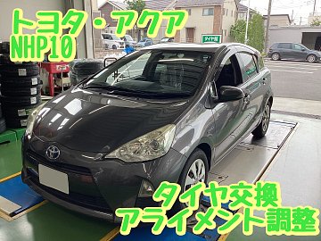 トヨタ・アクア(NHP10) タイヤ交換・アライメント調整!