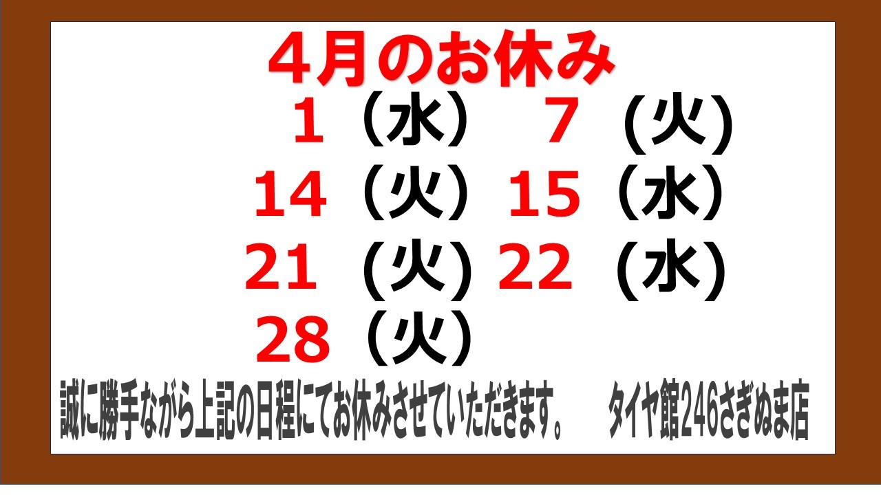 タイヤ履き替え時期の為、電話が繋がりにくくなっております。