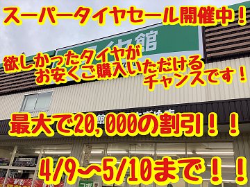 スーパータイヤセール開催中です! 欲しかったタイヤお安くご購入いただけます! メンテナンスクーポンも付いてくる!