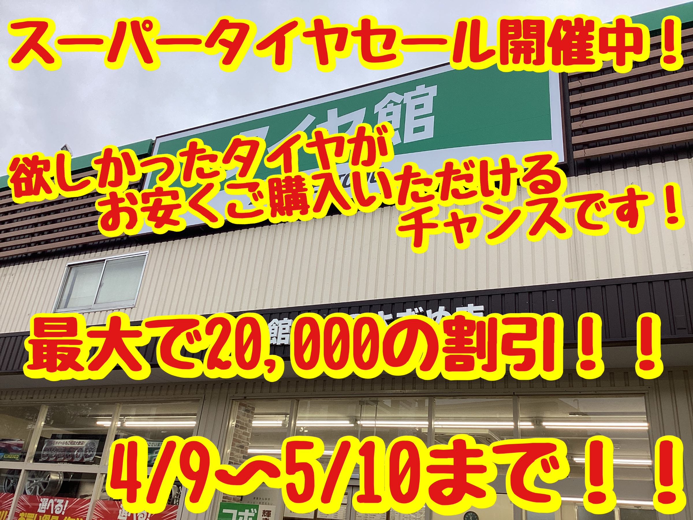 スーパータイヤセール開催中です! 欲しかったタイヤお安くご購入いただけます! メンテナンスクーポンも付いてくる!