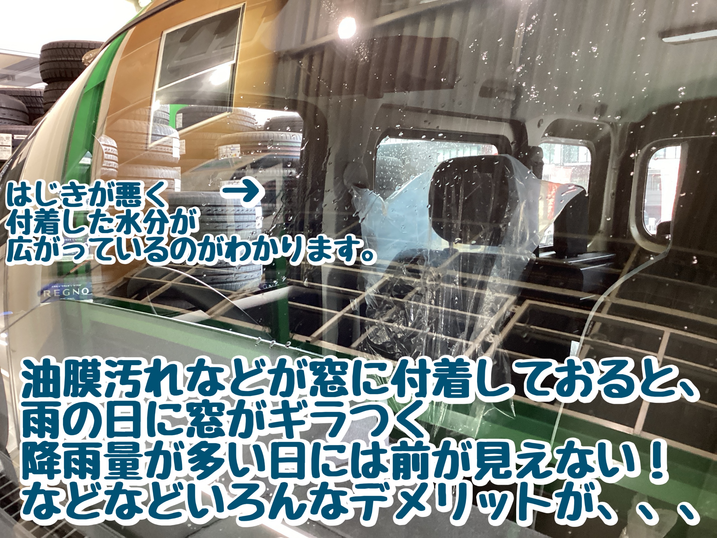油膜汚れがガラスに蓄積すると、