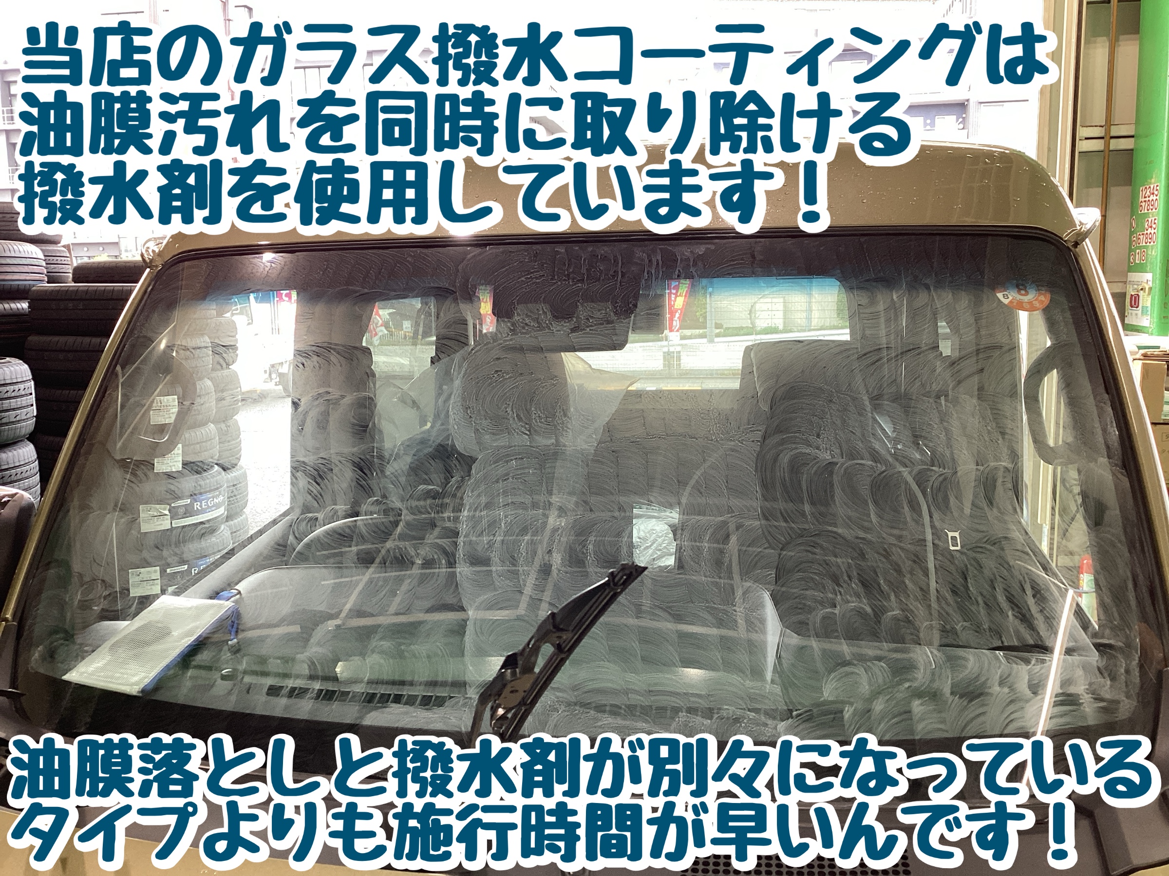 フロントガラスの撥水コーティングなんてものも