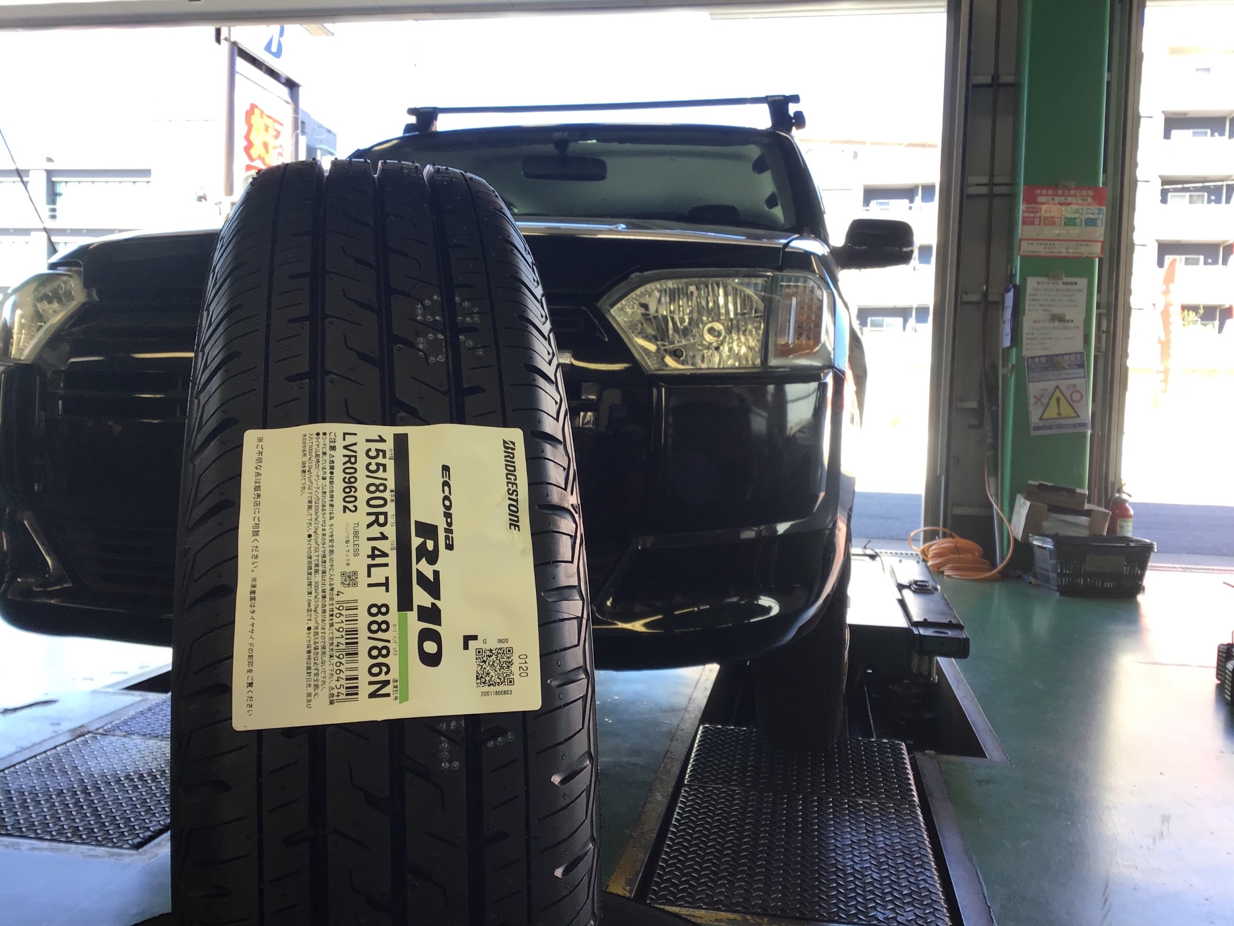 タイヤは今年2月に発売になった出来立て新作の商用車用タイヤ「R710」です! そしてタイヤサイズは155/80R14です