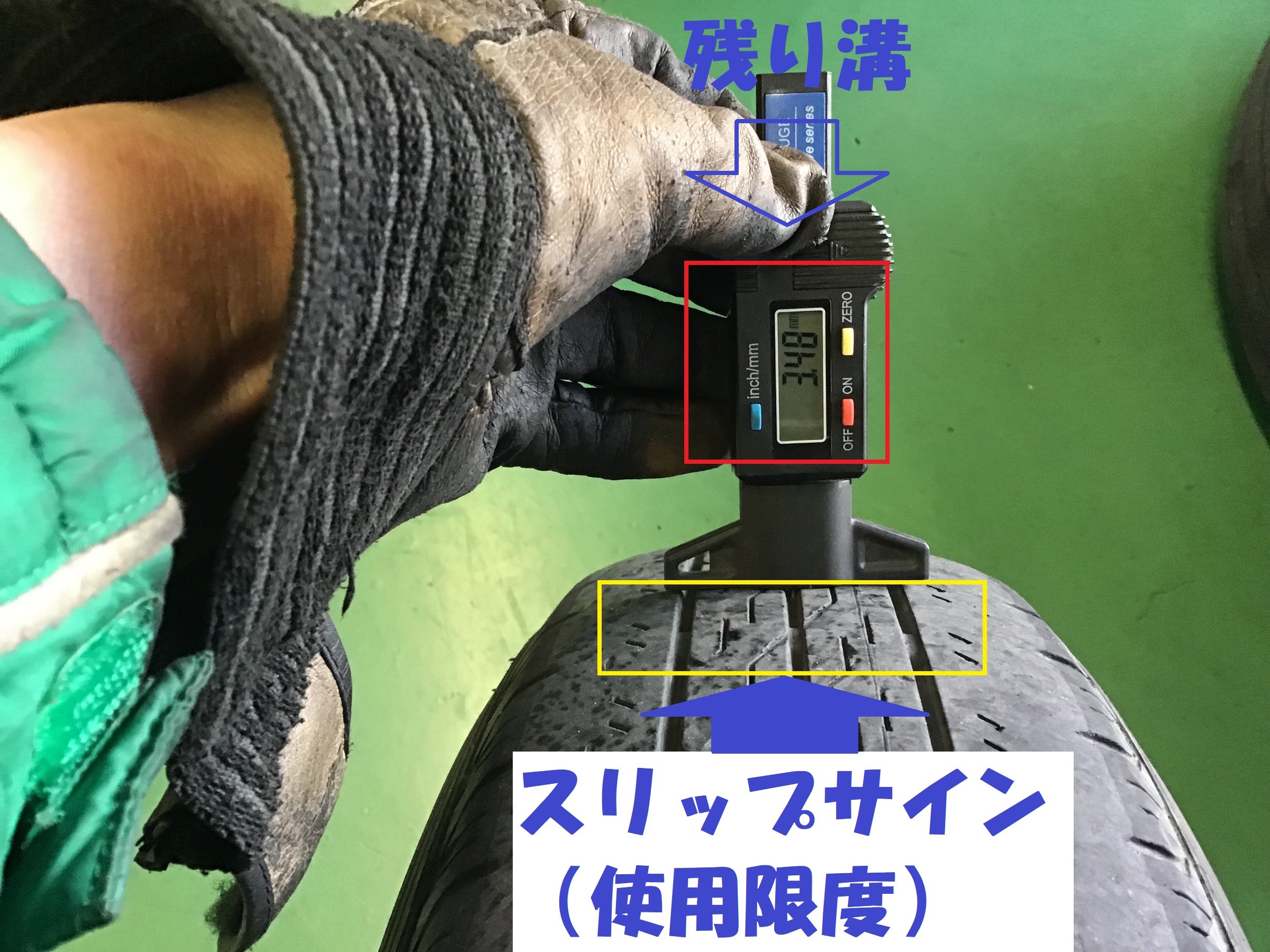 残り約3.5mmという結果で、やはりそろそろタイヤの交換時期でした。