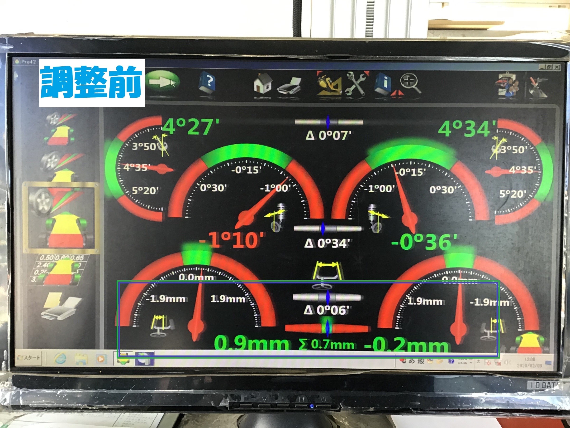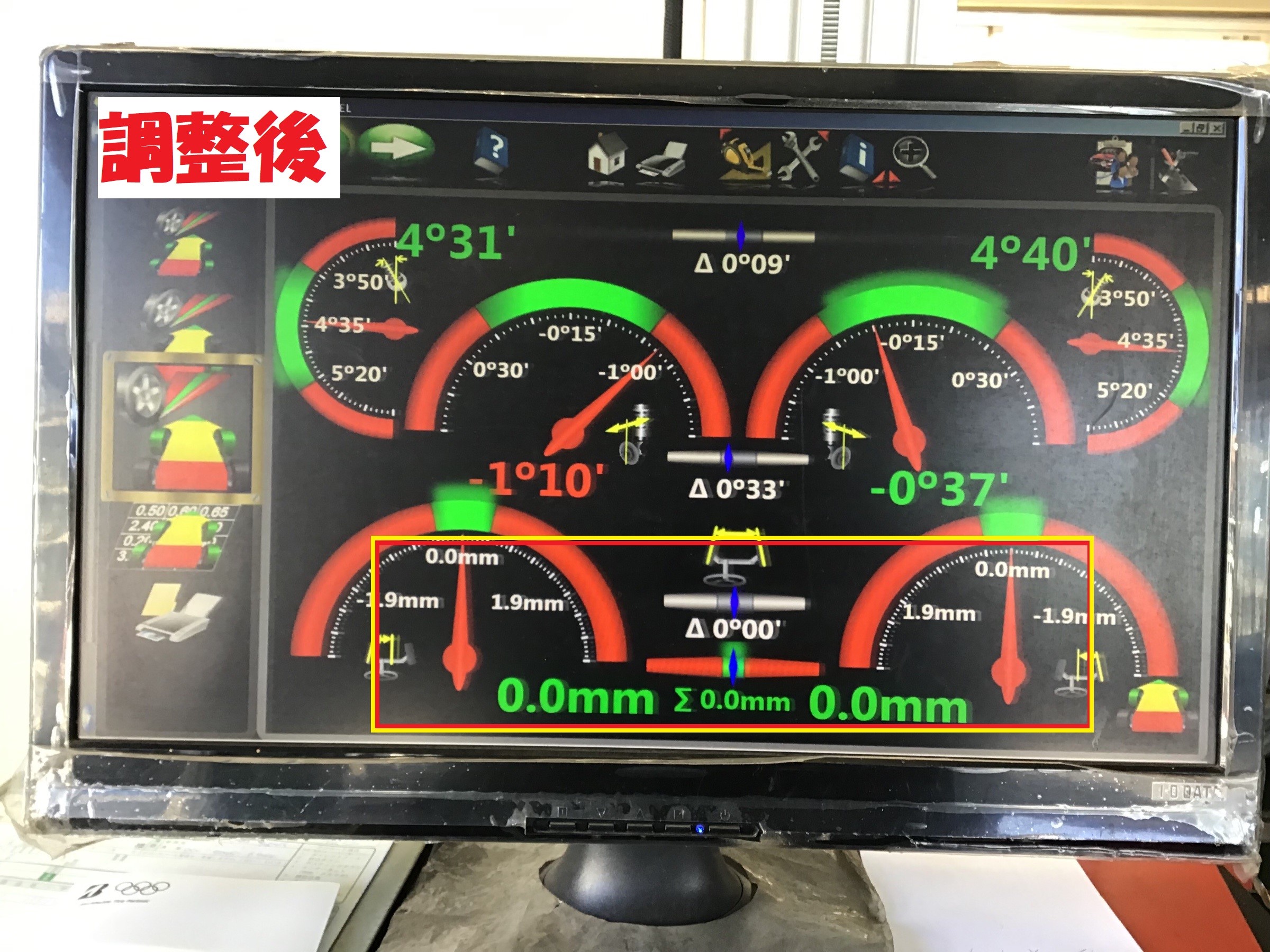 調整後にしっかりと左右の数値が揃っていますね。 多くの荷物を積むことの出来るお車ですから、アライメント作業でタイヤの偏摩耗を抑えることができます!