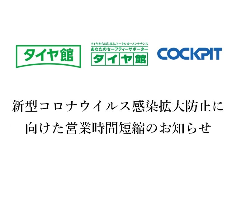 政府により発令されました新型コロナウィルス感染拡大防止の為の緊急事態宣言を受け、お客様及び従業員の安全と健康を第一に考え、下記期間、営業時間を変更し、短縮営業とさせて頂きます。