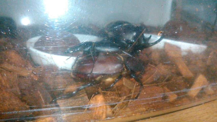 カブさん(カブト♀)の上にクワ君(クワガタ♂)が乗って