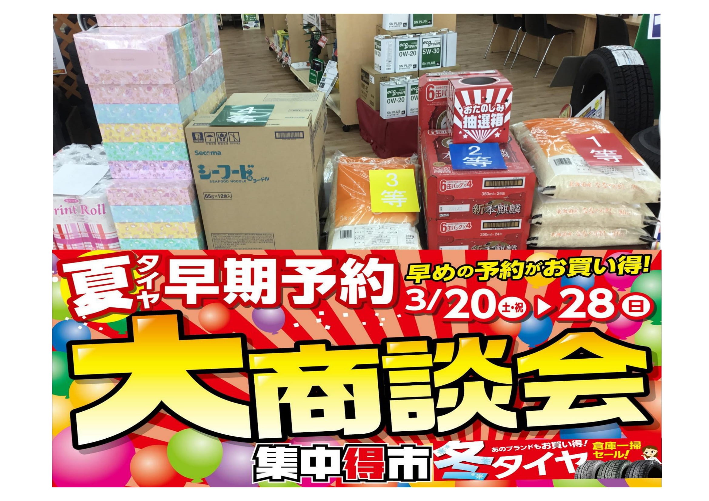 期間中はタイヤ4本ご成約のお客様に景品もご用意してお待ちしております!