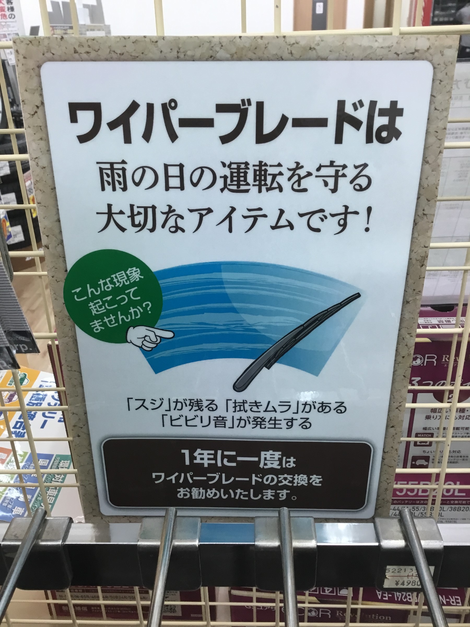 当店では通常のワイパーからふき取るだけで水をはじく撥水コートが出来るワイパーなど揃えています!