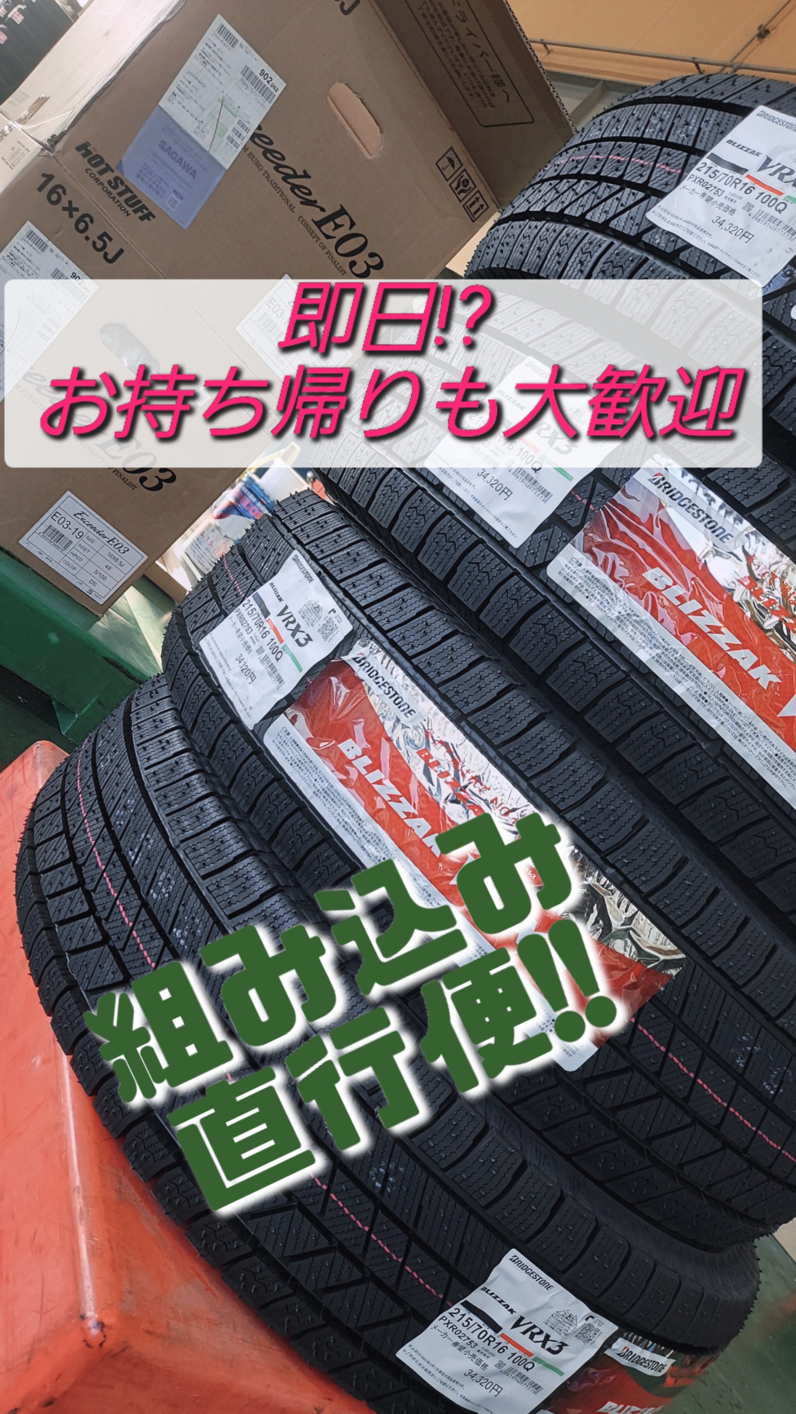 タイヤ交換始まりました!!組み込み大量!!ブリザック(BLIZZAK)はタイヤ館へ!!