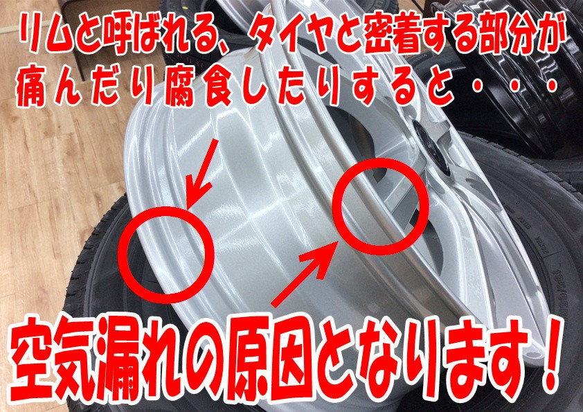 タイヤと密着するリムと呼ばれる部分が腐食したり痛んでしまうと