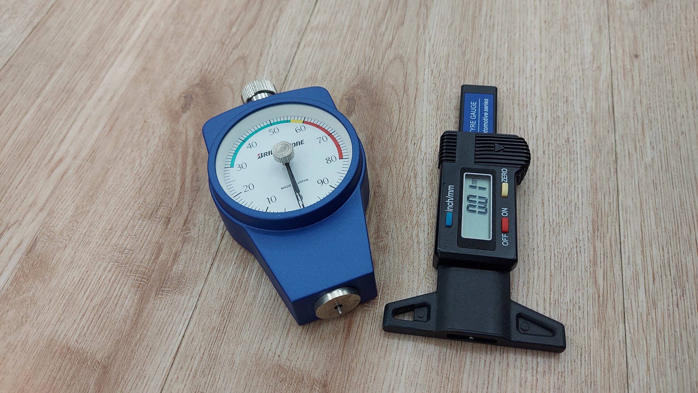 ○残り溝を計るデプスゲージ