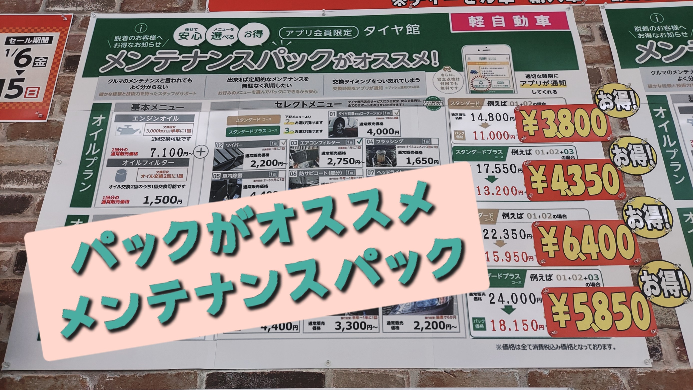 オイル交換・タイヤ交換がセットになった【タイヤ館のメンテナンスパック】はいかがでしょう☆