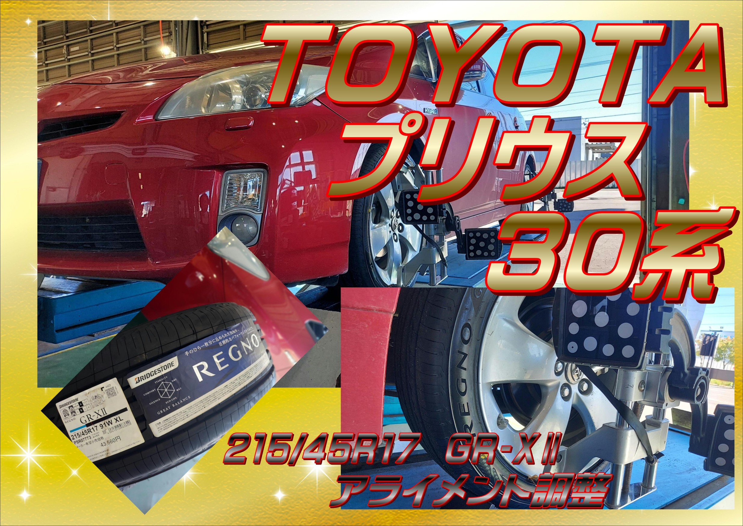 今日のアライメント TOYOTA 30プリウス feat レグノGR-XⅡ プレミアムセール開催中