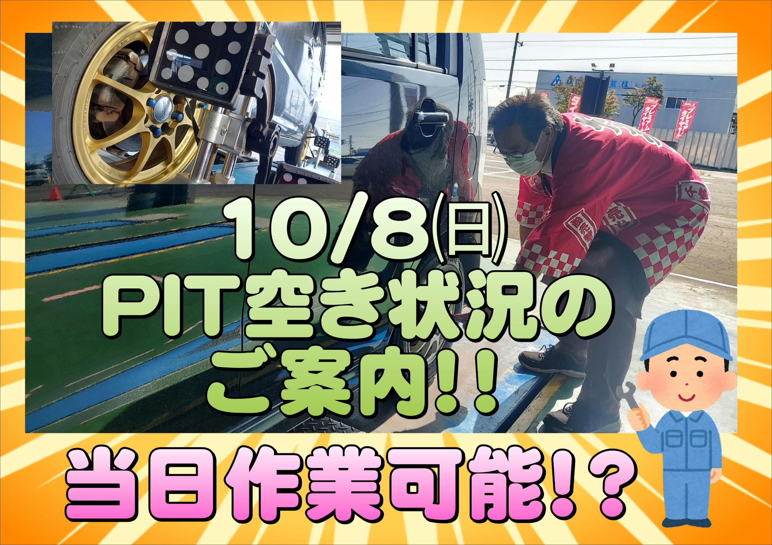 10/8㈰ 当日作業予約のご案内!! ※11:00時点