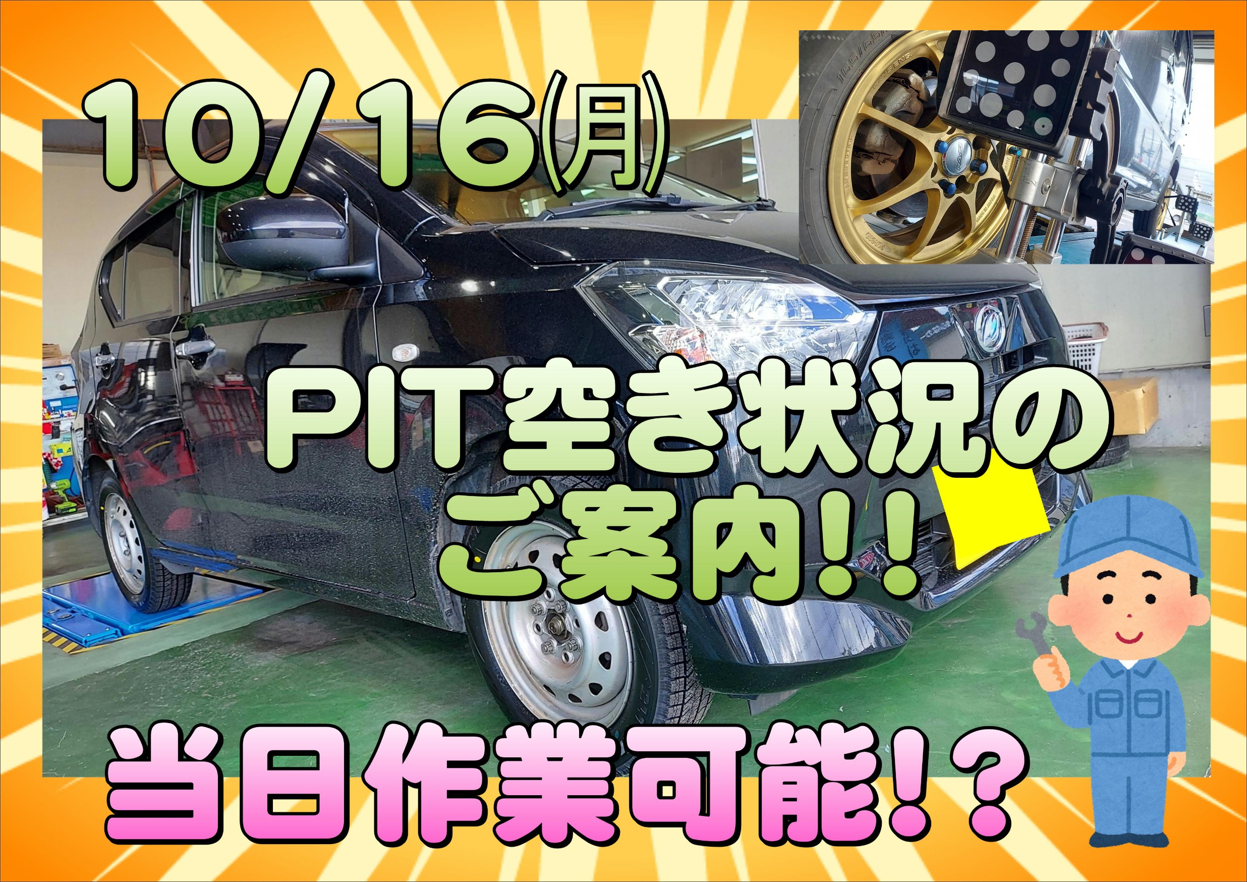10/16㈪ 当日作業予約のご案内!! ※11:00時点