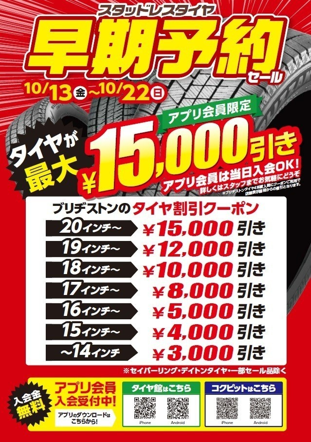 スタッドレスタイヤへのタイヤ交換時期が!!!