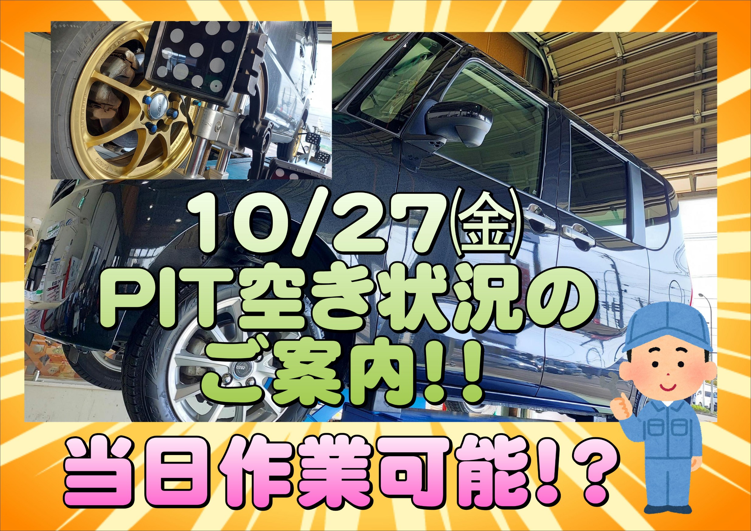 10/27㈮ 当日作業予約のご案内!! ※12:00時点
