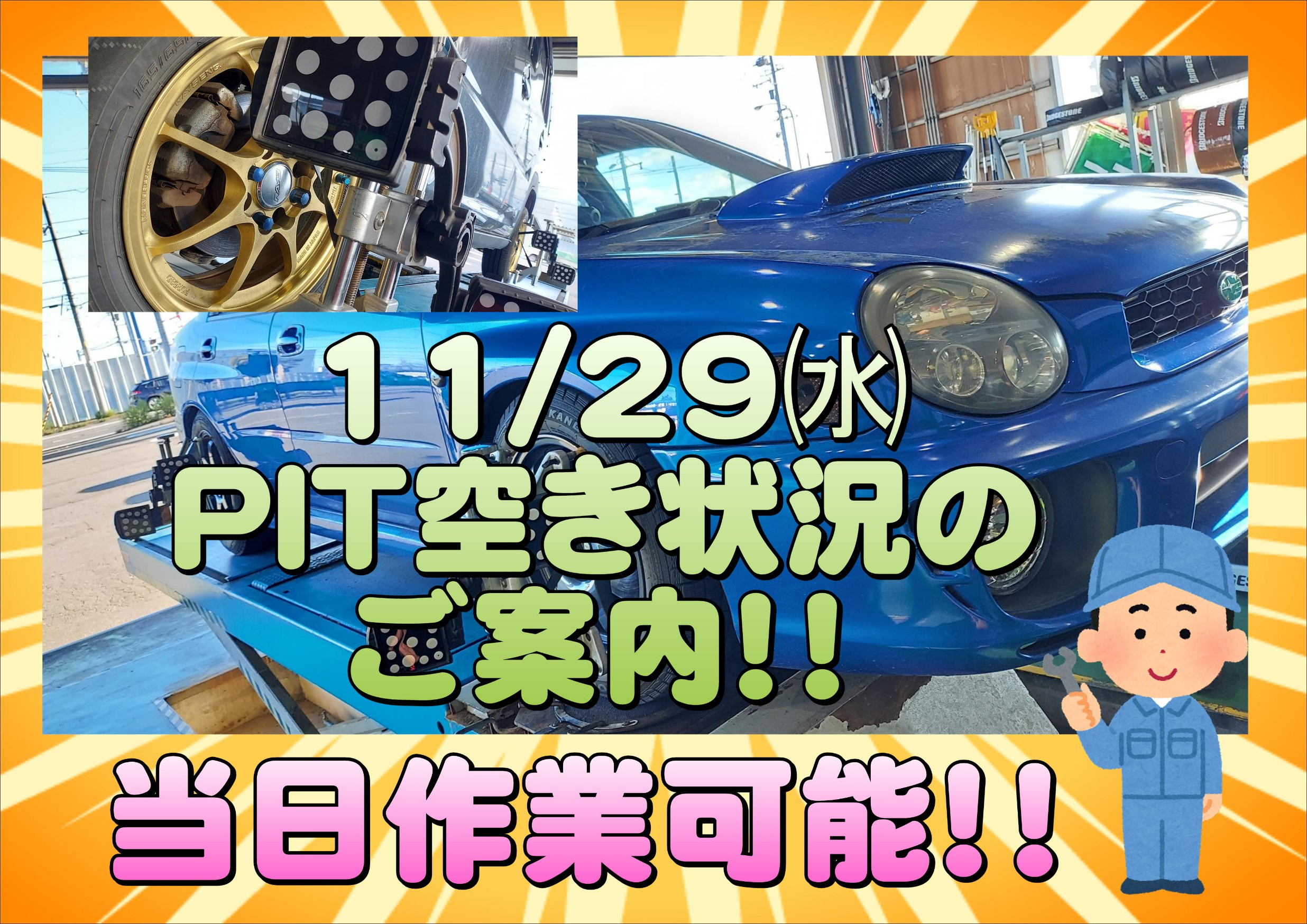 11/29㈬ 当日作業予約のご案内!! ※11:00時点