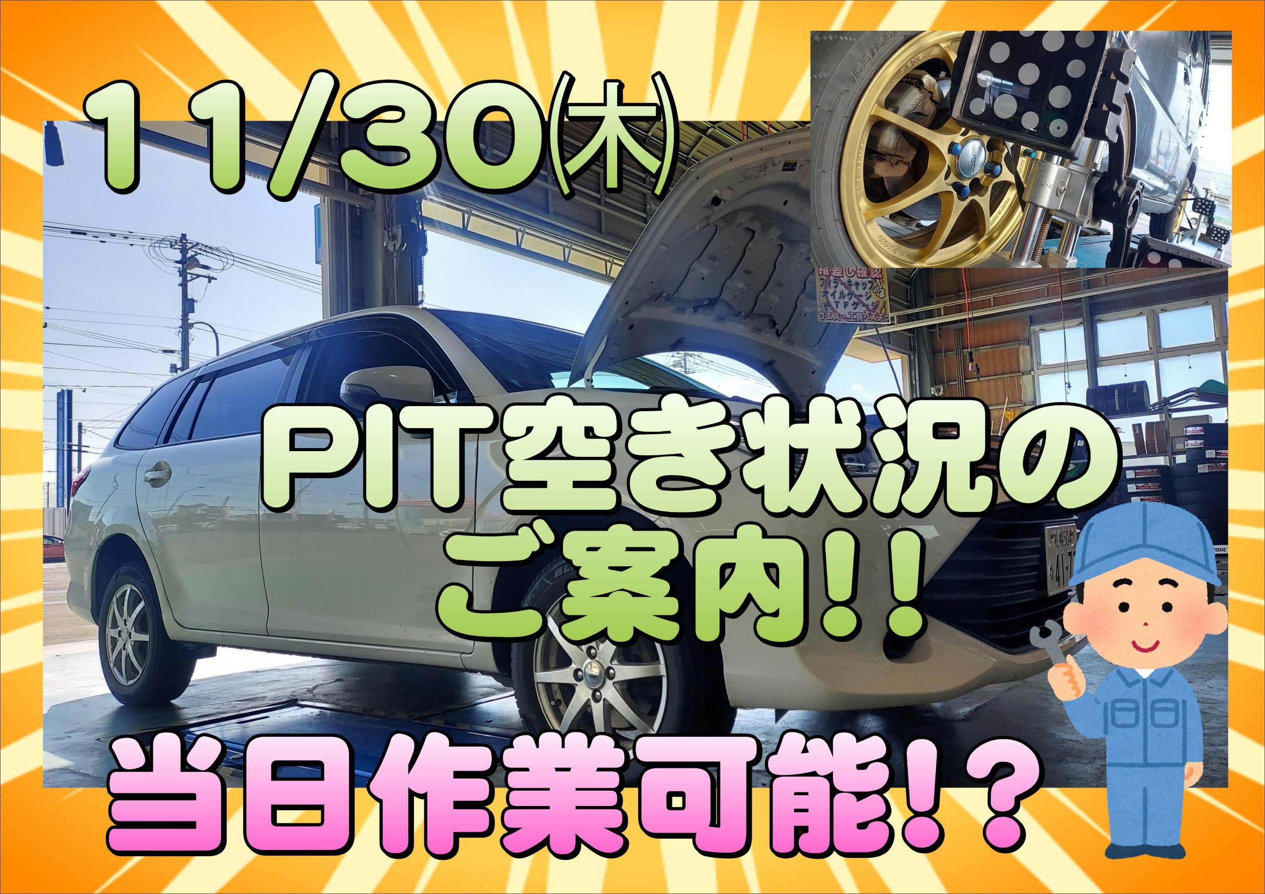 11/30㈭ 当日作業予約のご案内!! ※10:00時点