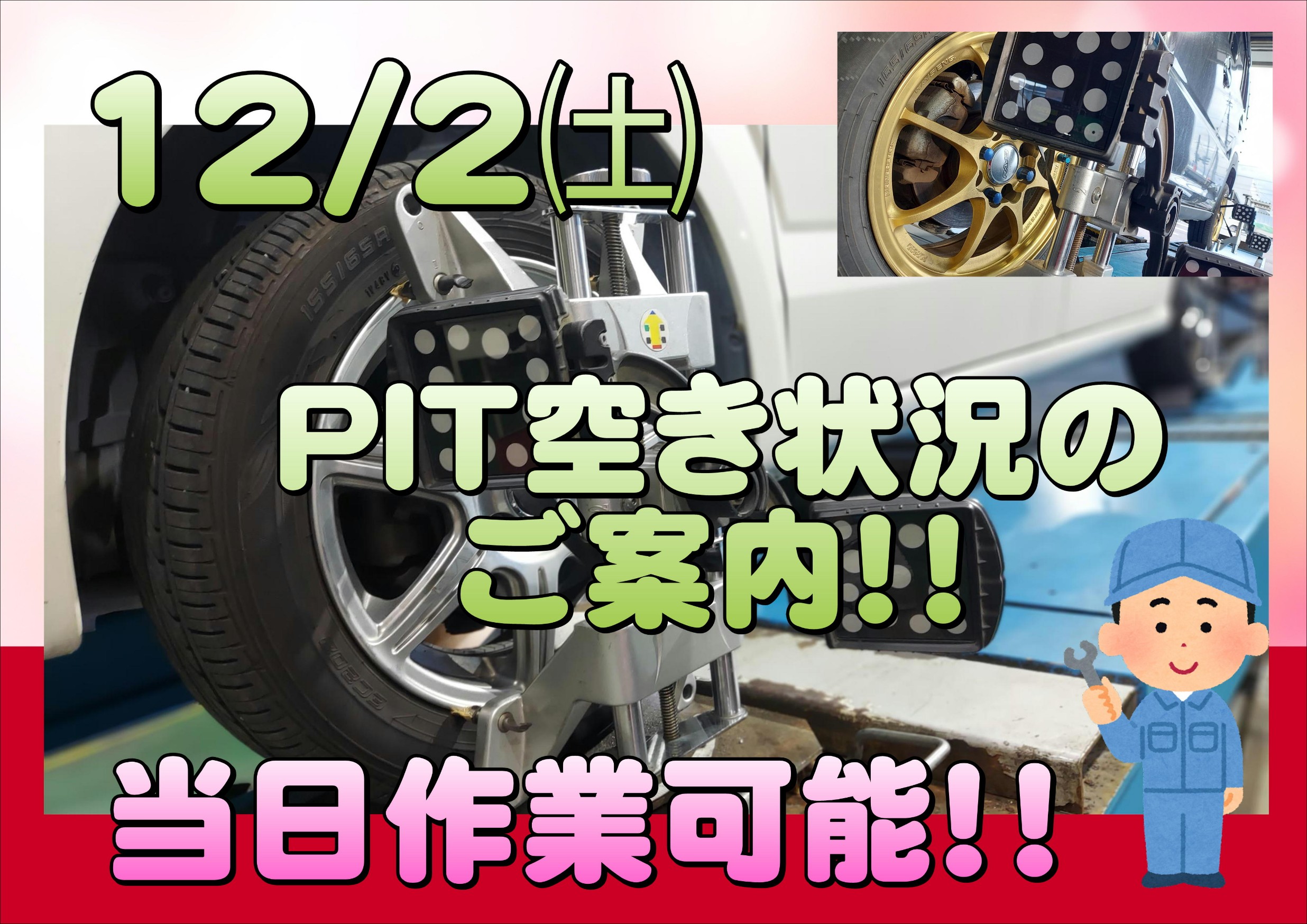 12/2㈯ 当日作業予約のご案内!! ※10:30時点
