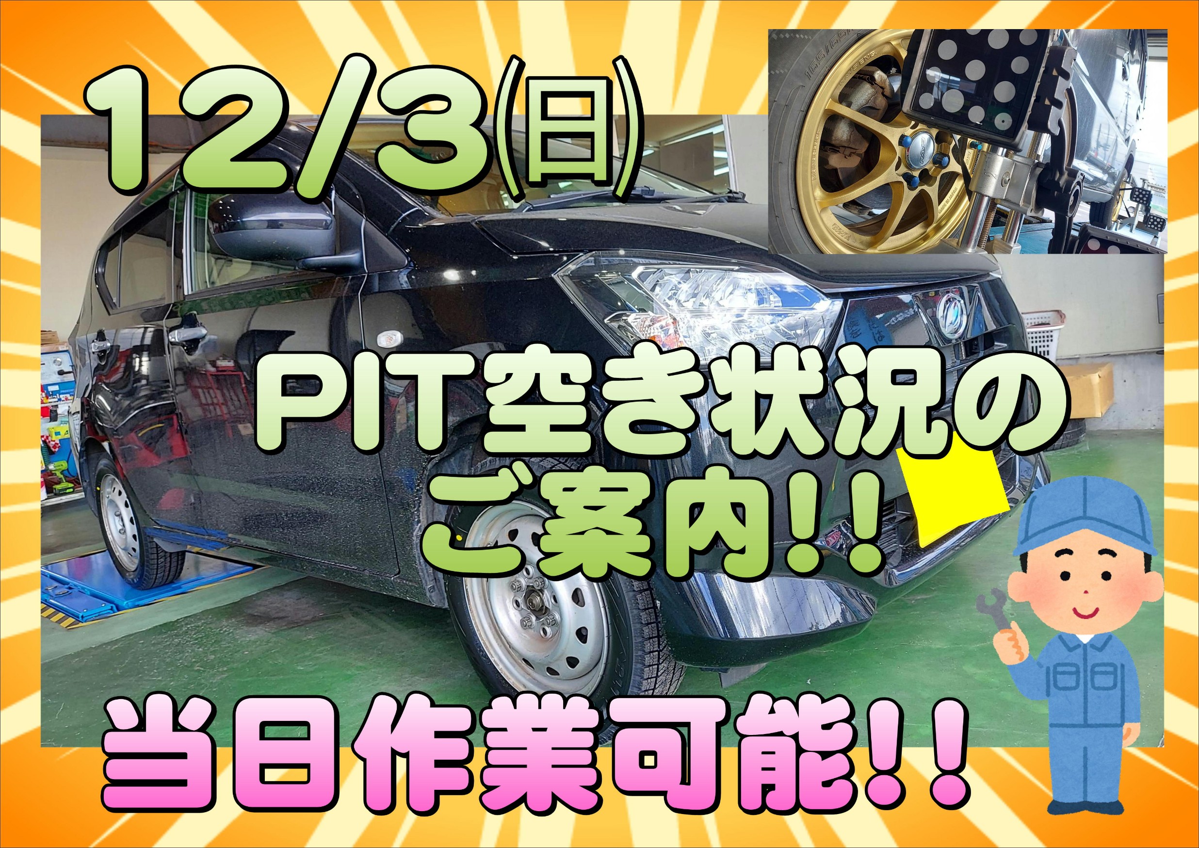 12/3㈰ 当日作業予約のご案内!! ※10:00時点