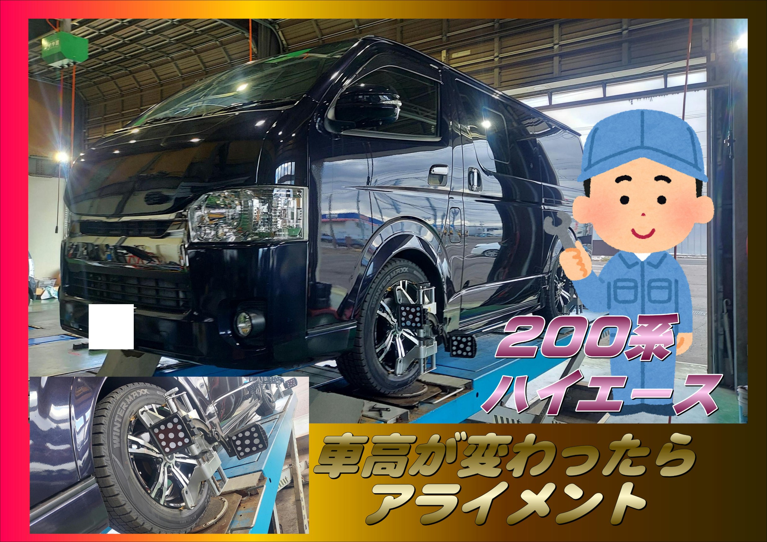 200系ハイエース アライメント調整 車高が変わったらアライメント♪ 夏タイヤ在庫一掃アウトレットセール