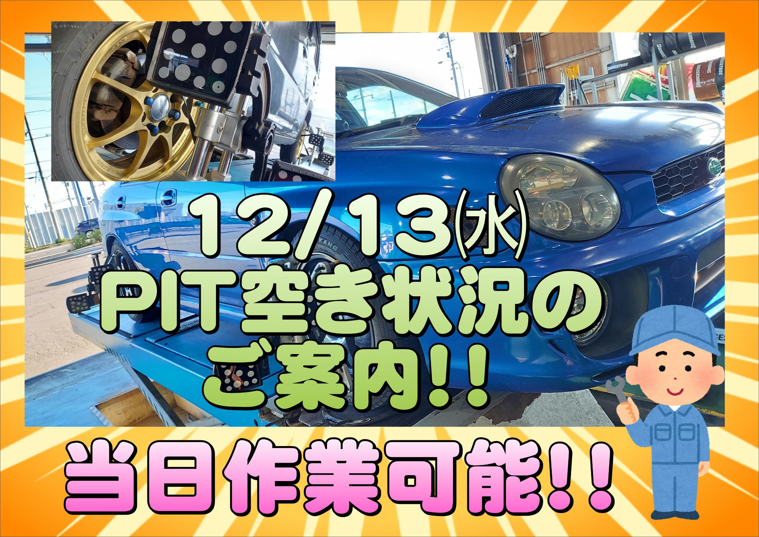 12/13㈬ 当日作業予約のご案内!! ※11:30時点