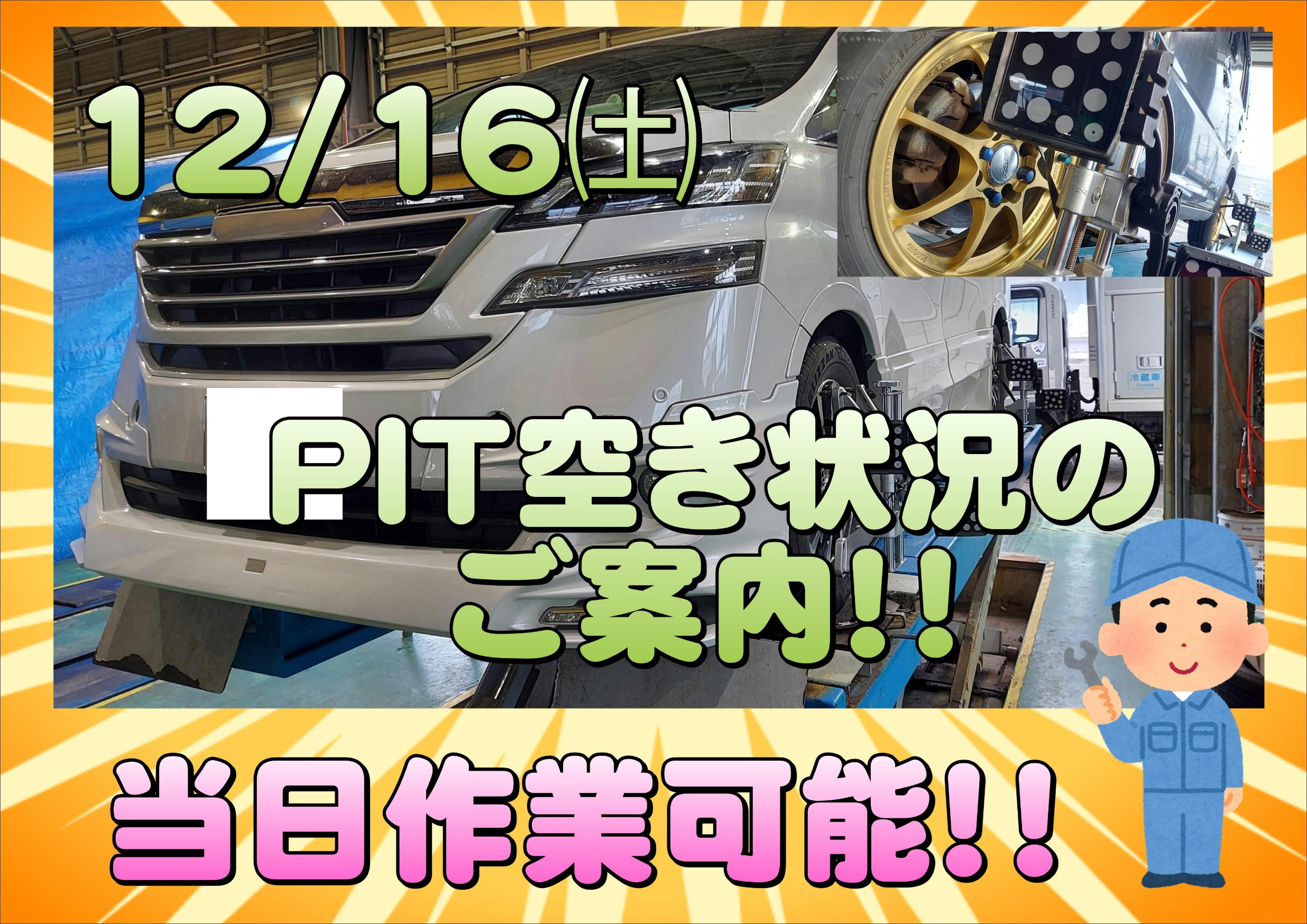 12/16㈯ 当日作業予約のご案内!! ※12:00時点