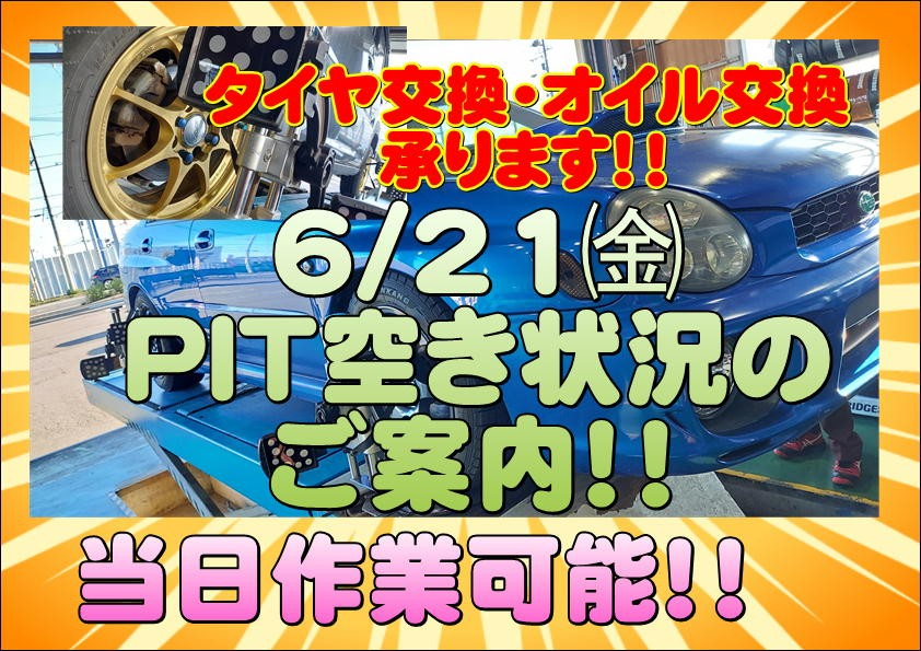 【PIT空き状況】のご案内です!!