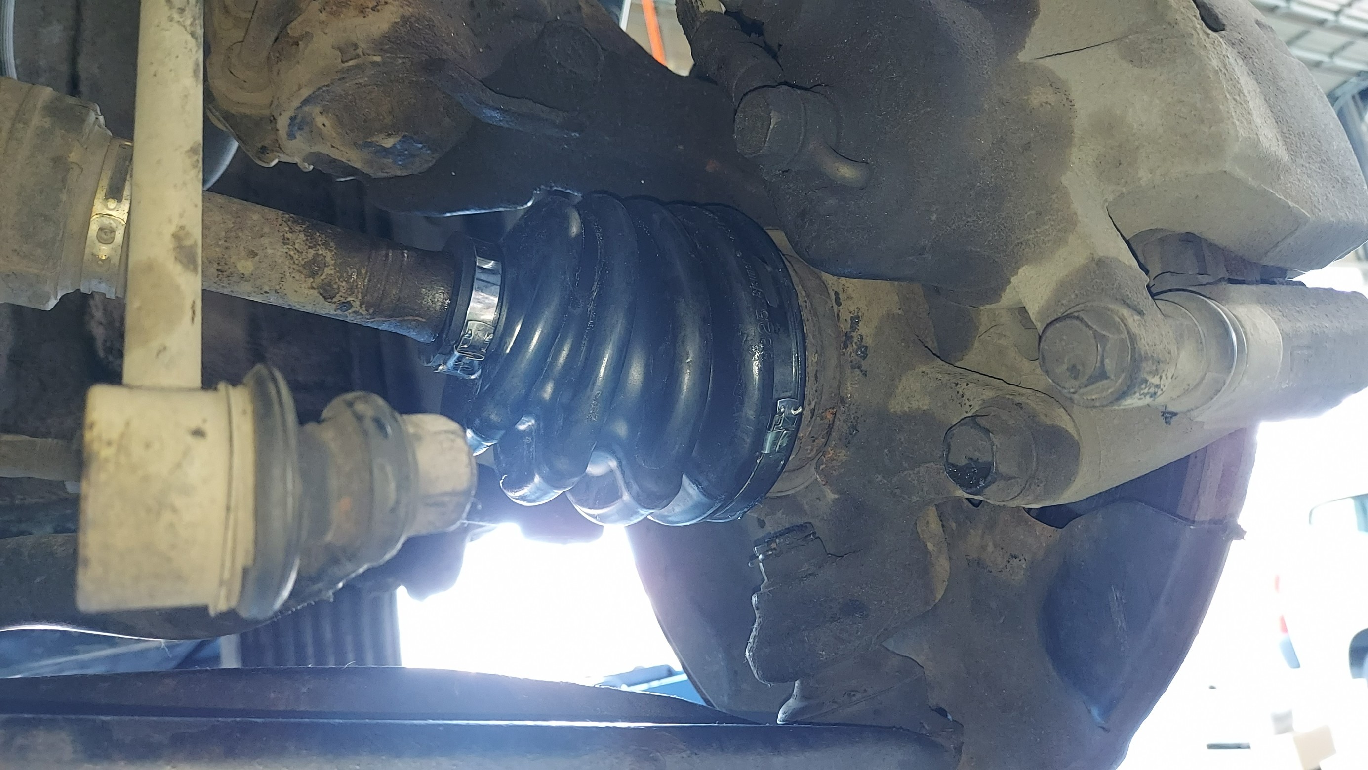 フロント左アウター側のドライブシャフトブーツが